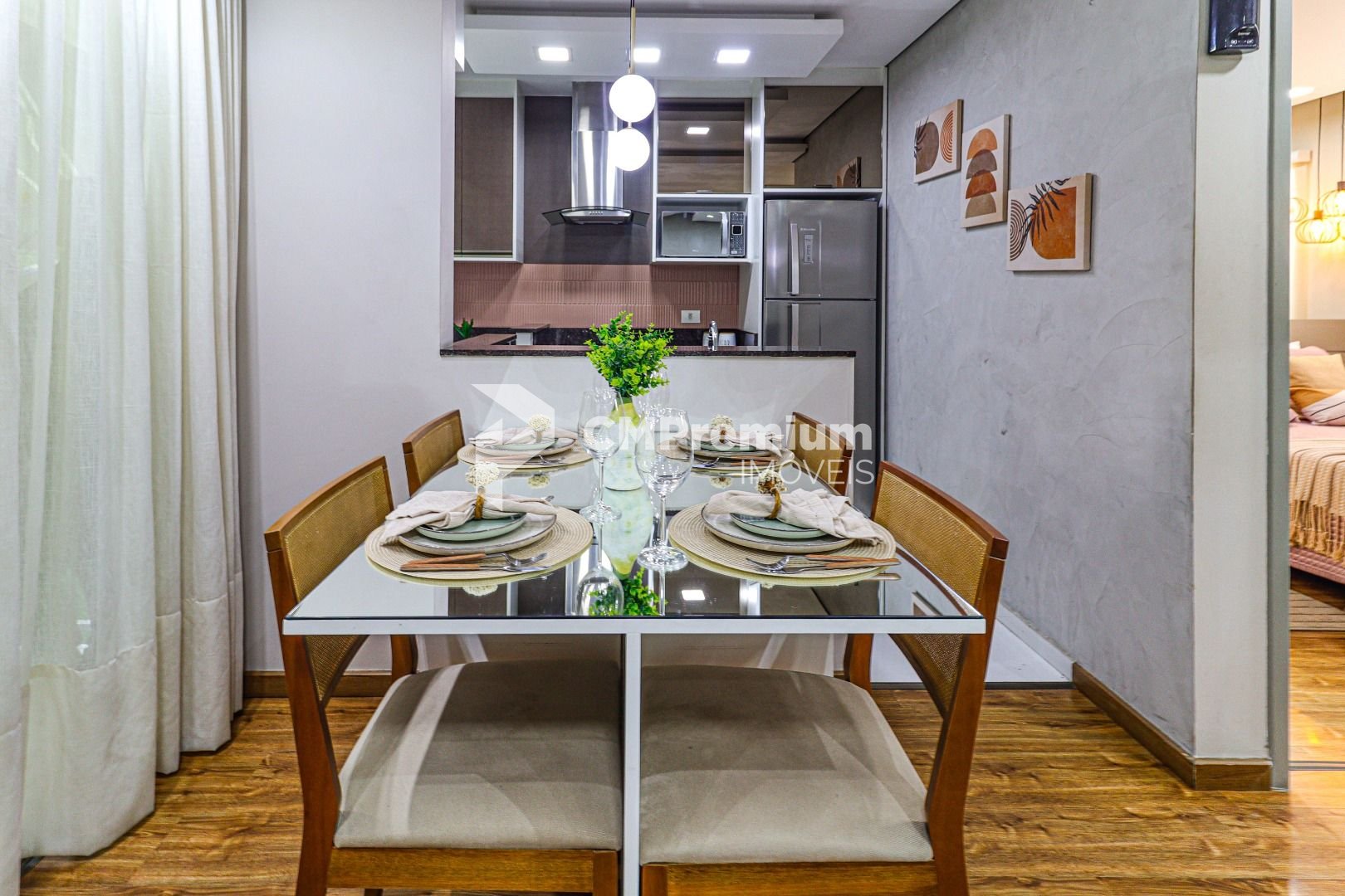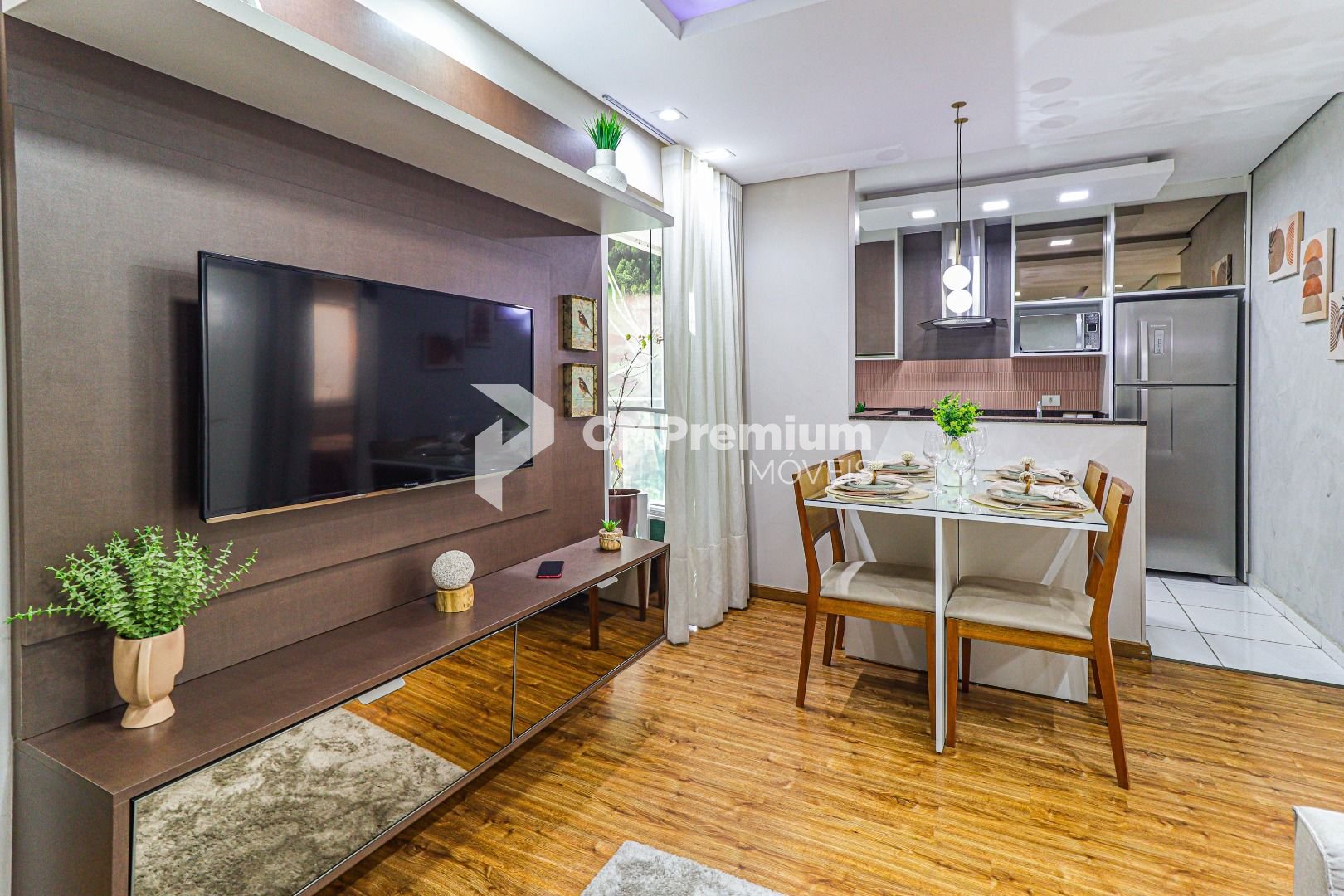 -Sala de estar integrada com a cozinha, oferecendo um design moderno e funcional.