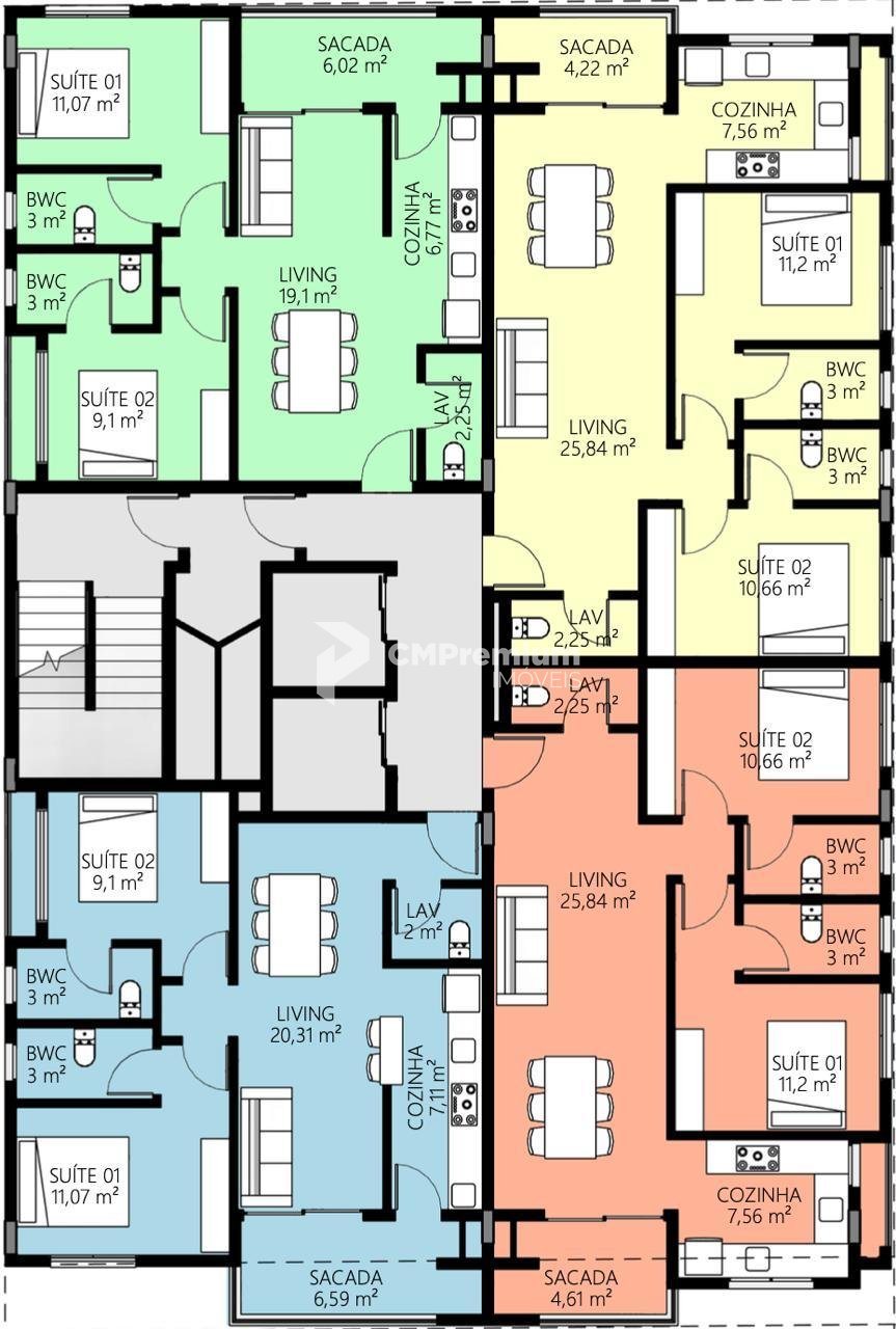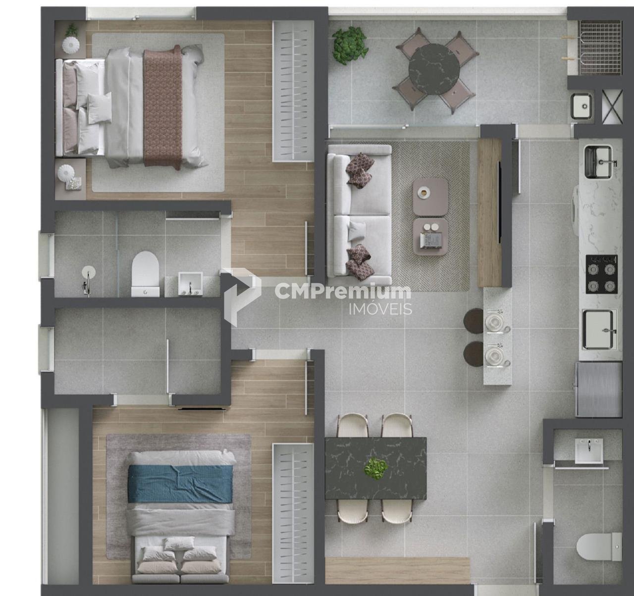 Áreas privativas entre 70 e 80 m², com plantas funcionais