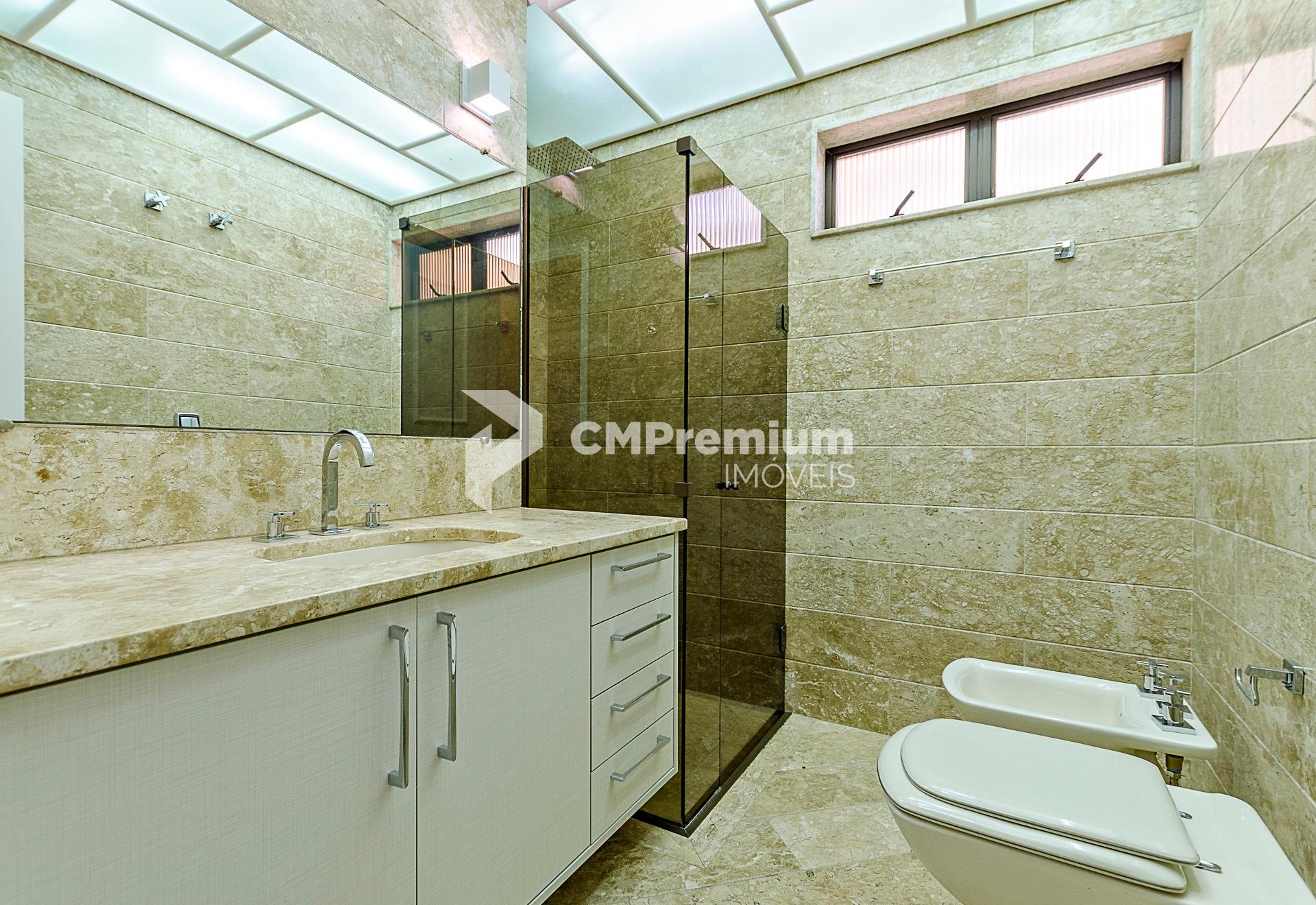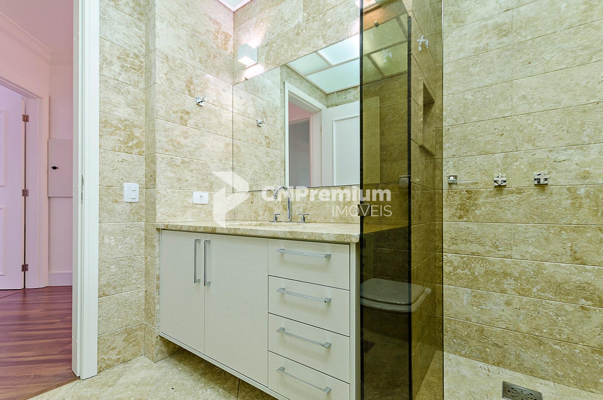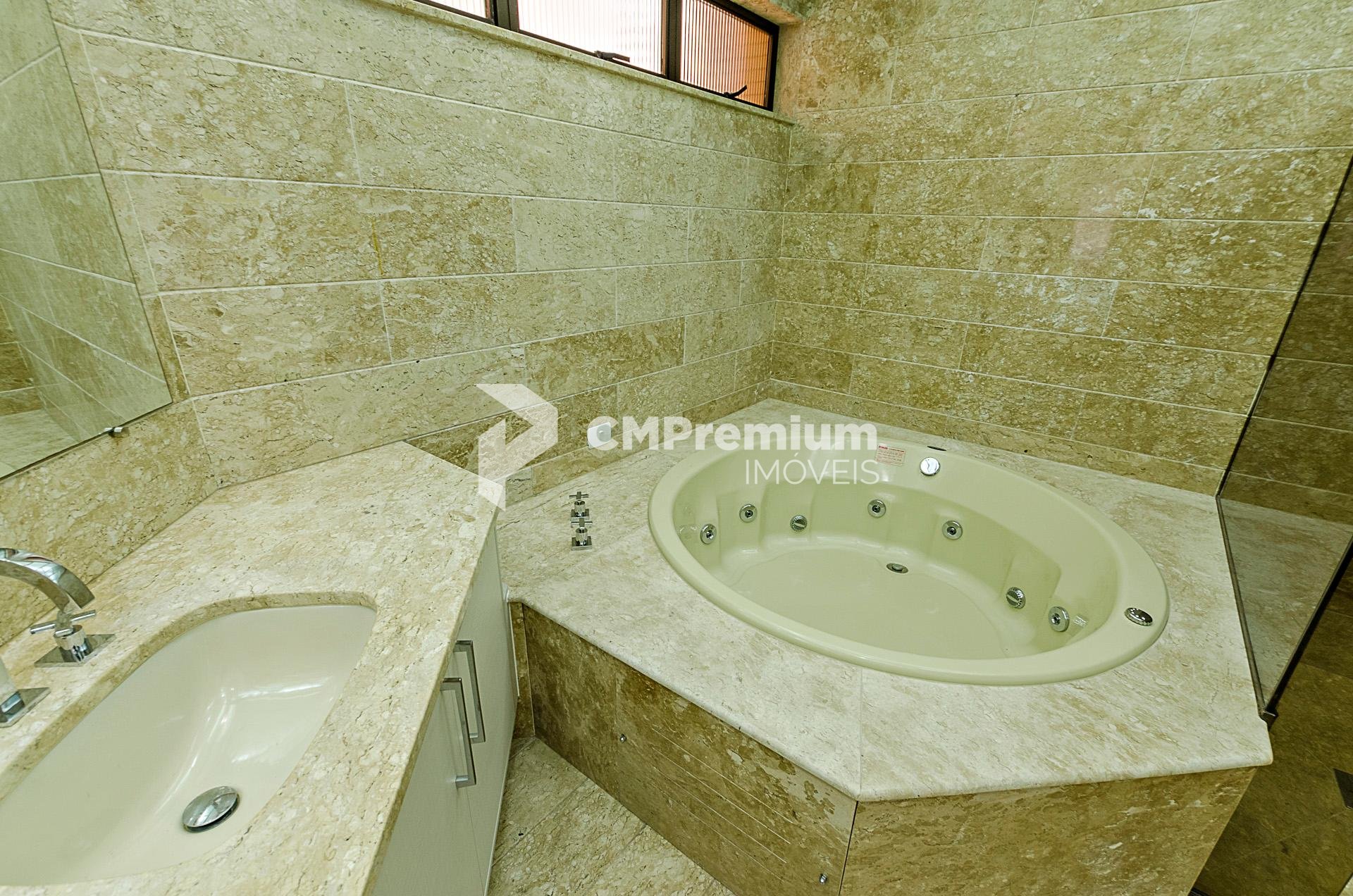 Quatro dormitórios com armários planejados, sendo duas suítes, júnior e máster com hidromassagem e closet, banheiros revestidos em mármore travertino.