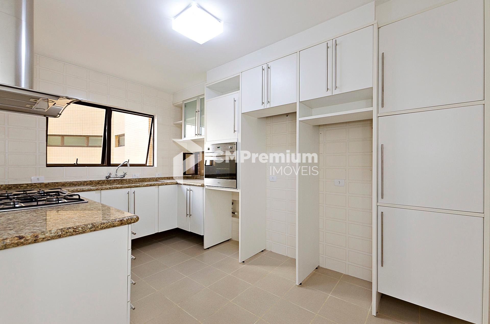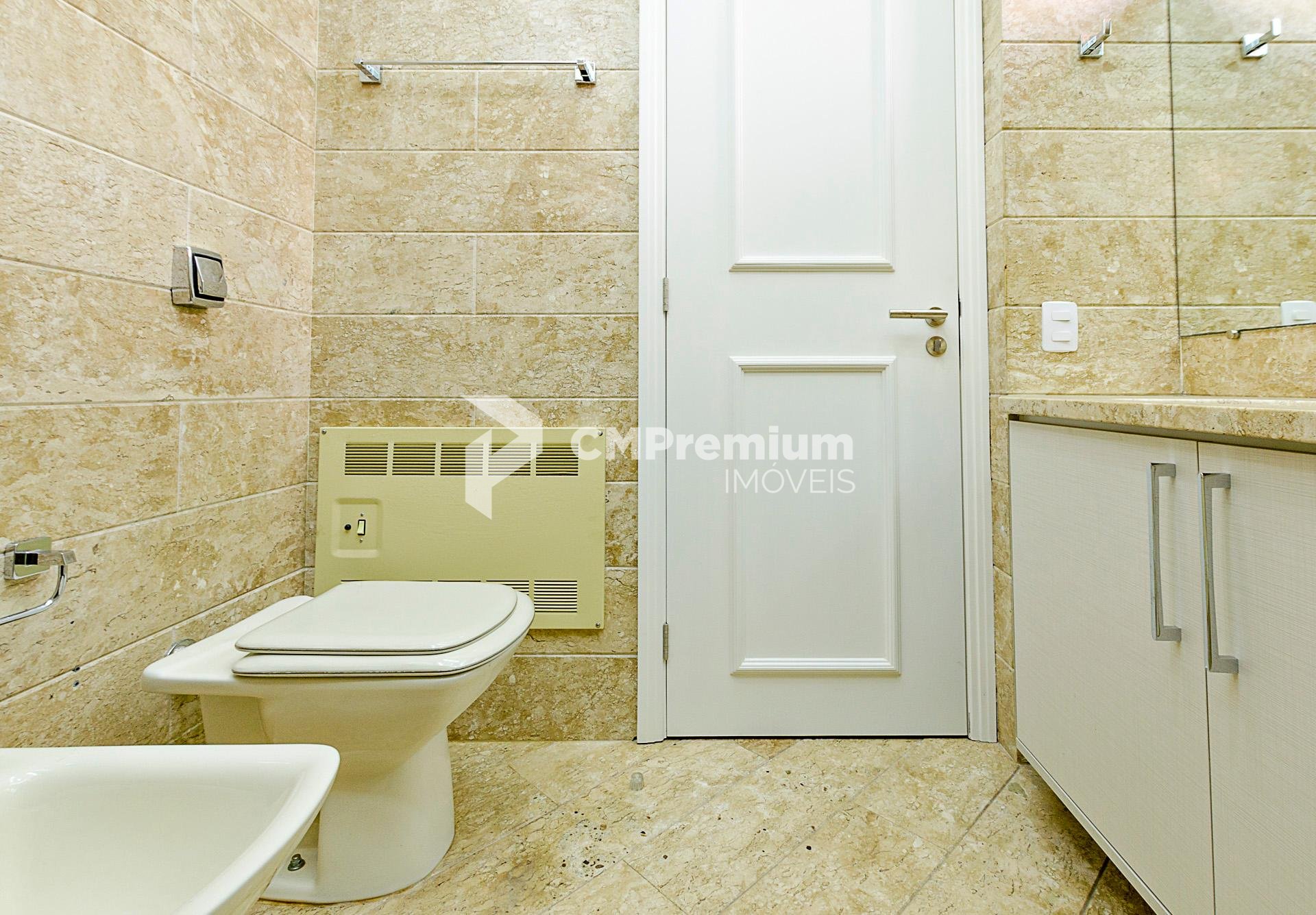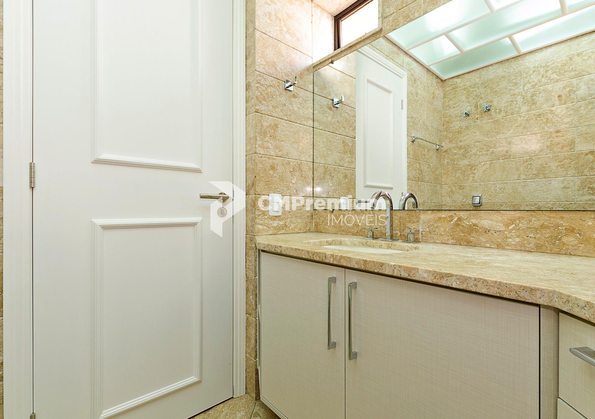 Quatro dormitórios com armários planejados, sendo duas suítes, júnior e máster com hidromassagem e closet, banheiros revestidos em mármore travertino.