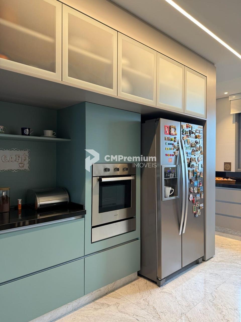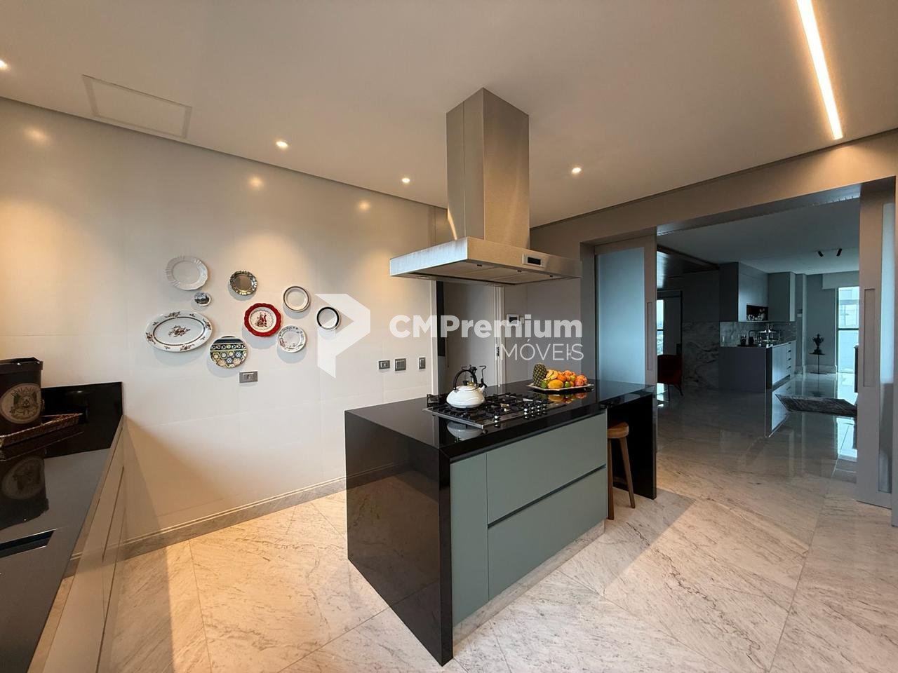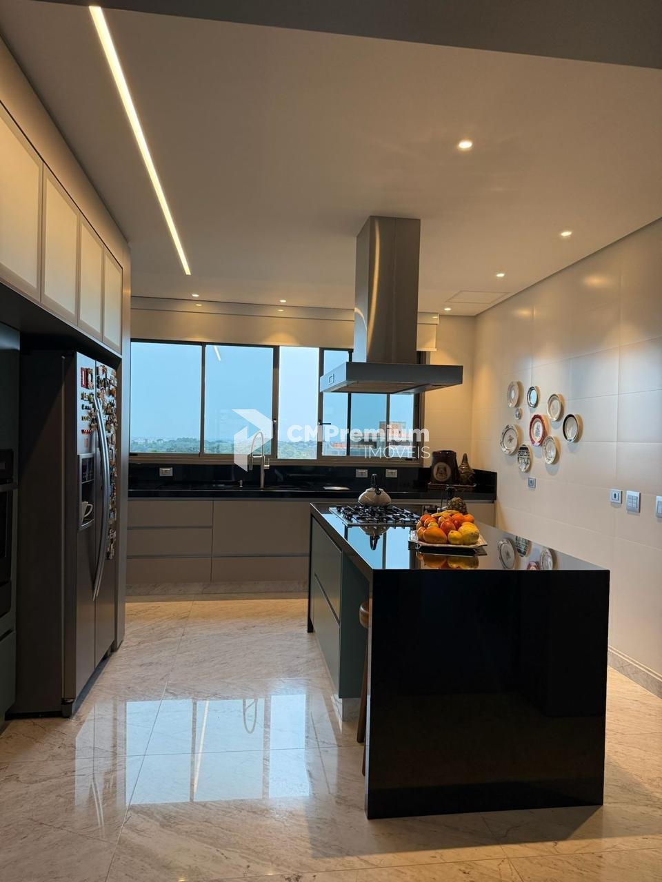 Cozinha com ilha central e eletrodomésticos de altíssimo padrão;