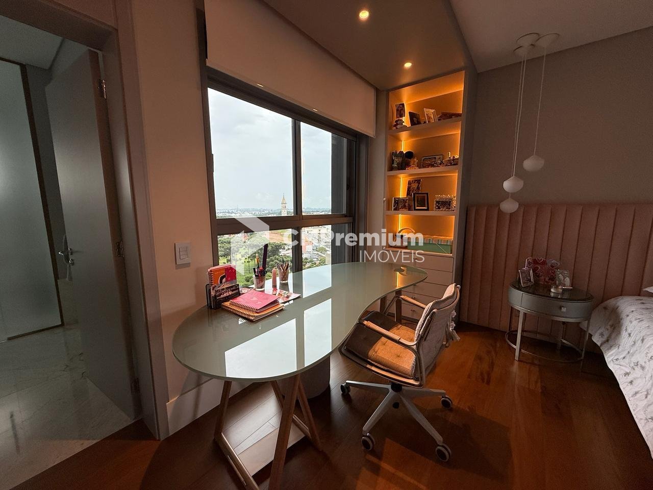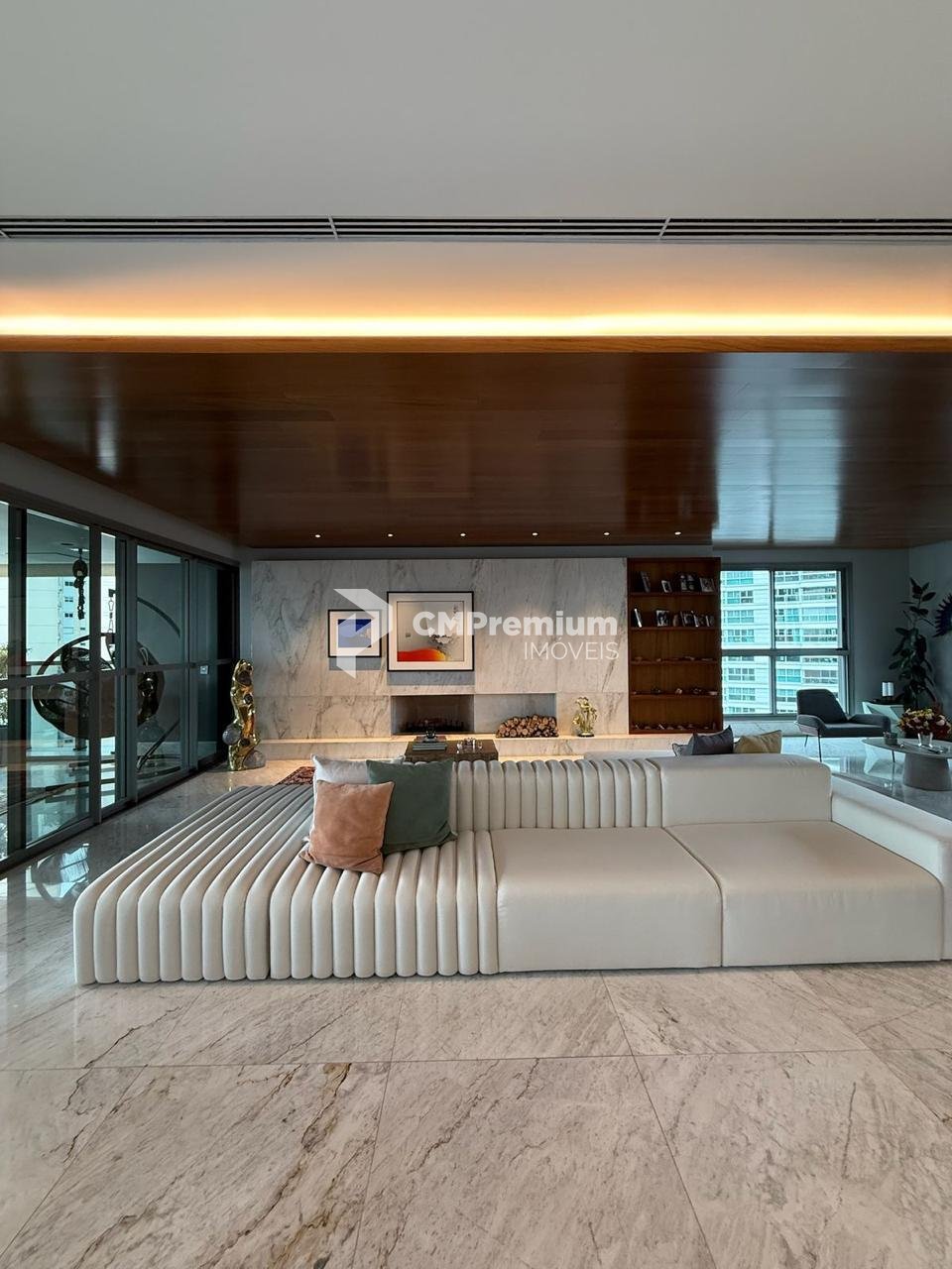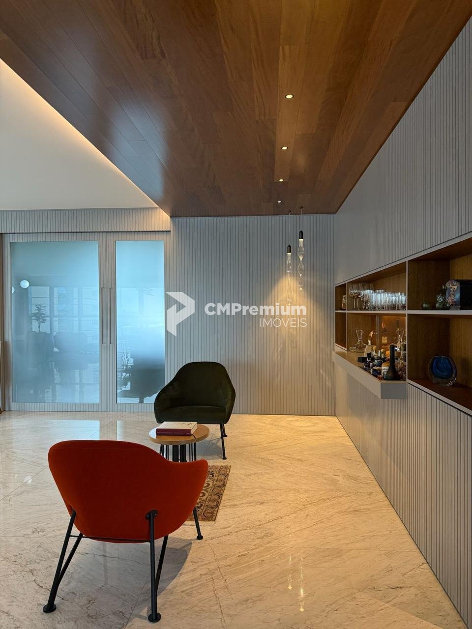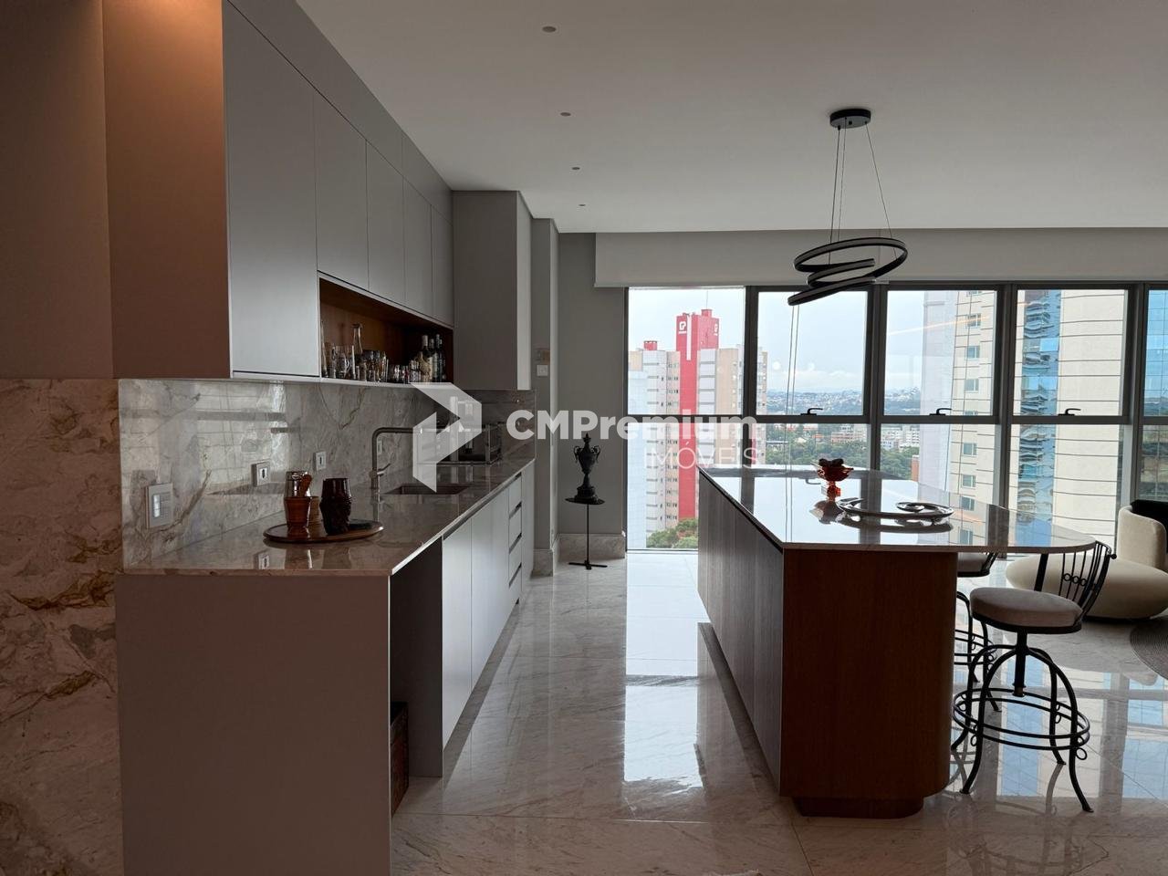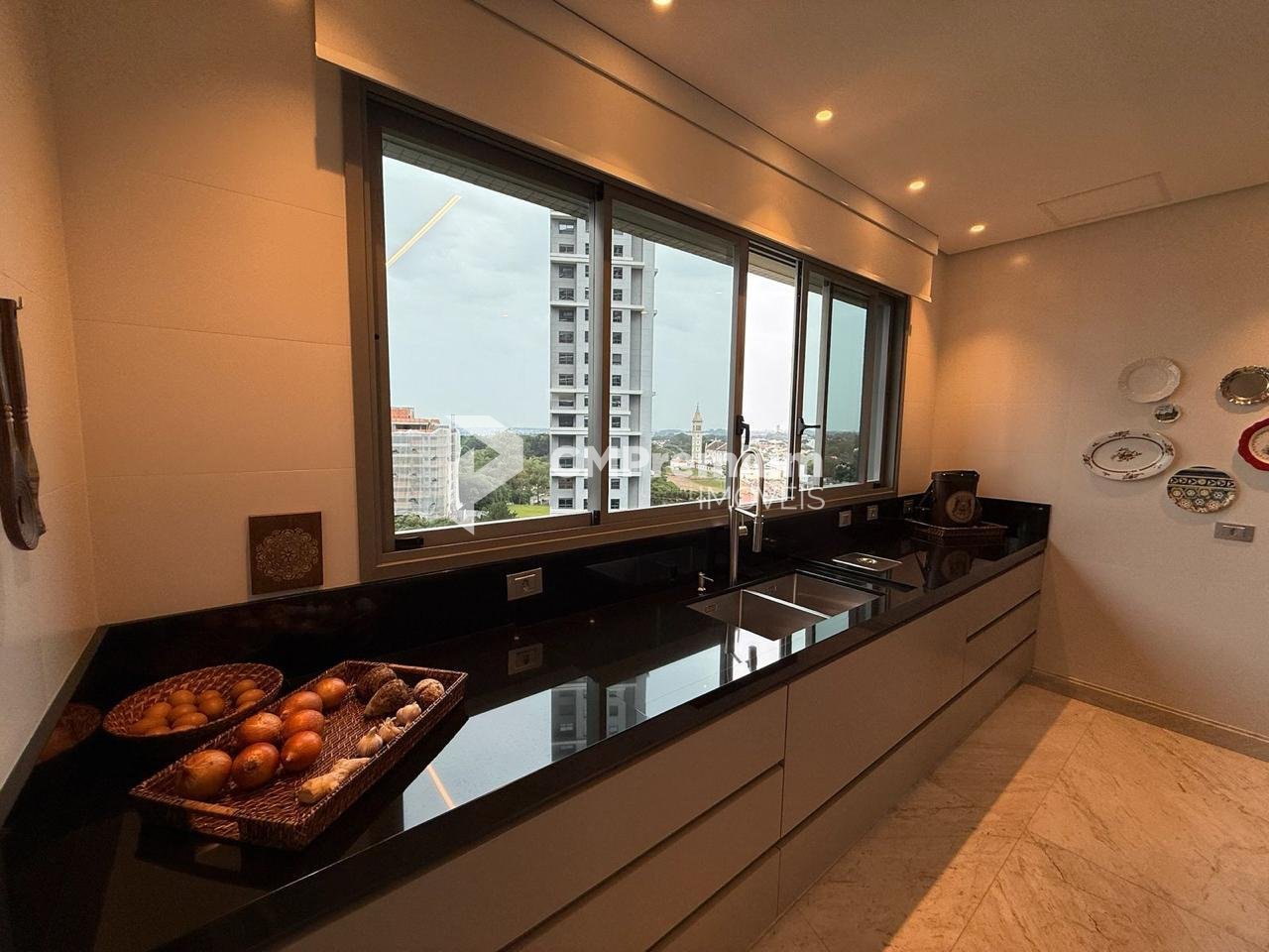 Esquadrias de alta performance, vidros laminados de 8mm, pisos e bancadas em mármore, portas de bandeira alta, persianas motorizadas e sistema acústico entre paredes e tubulações.