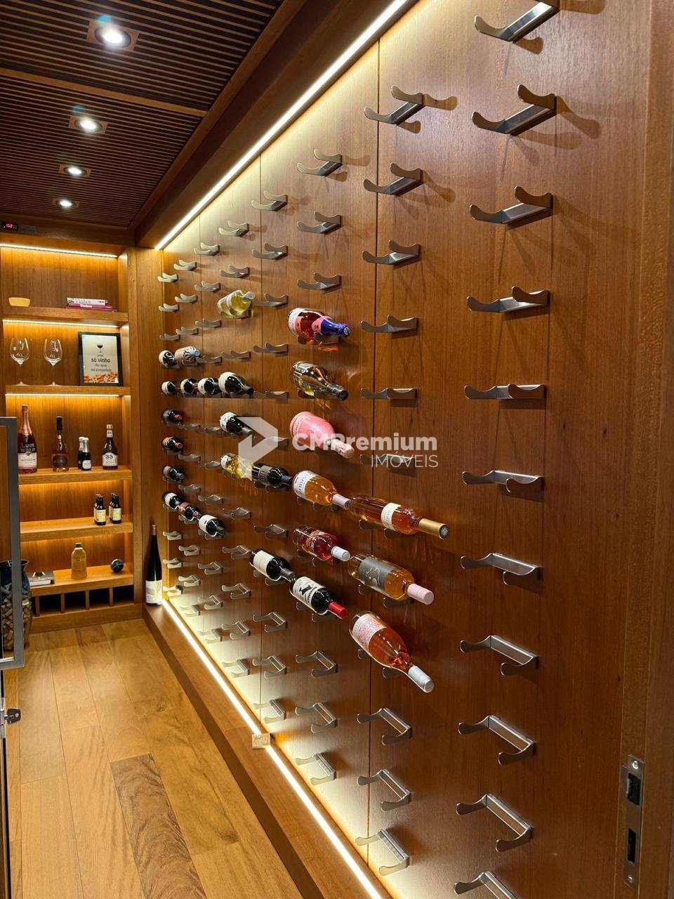 Living integrado com lareira, sala de jantar, espaço gourmet com churrasqueira a carvão, adega climatizada para 150 garrafas, sala de TV e varanda ampla;