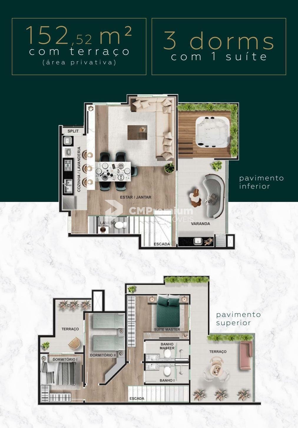 3 quartos com 1 suíte (entregue 100% mobiliada)