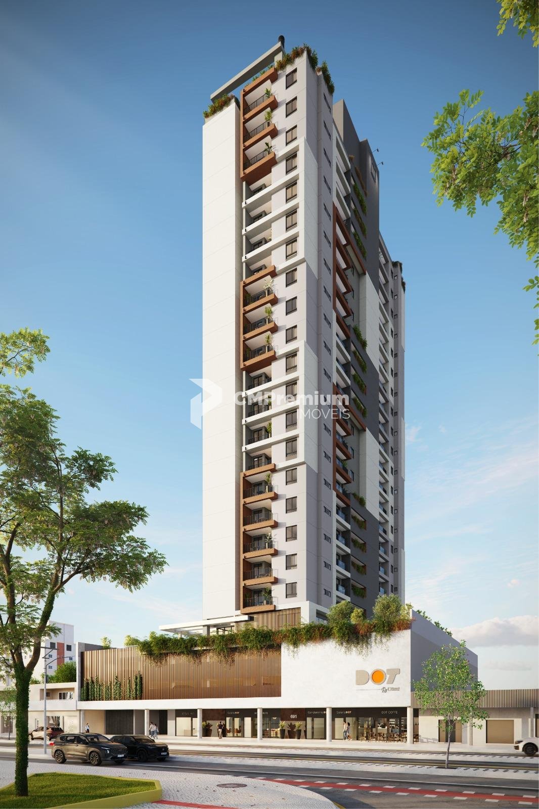 O edifício conta com 24 pavimentos e um mix inteligente de unidades residenciais e comerciais. As plantas variam de aproximadamente 30 a 76 m², com opções que incluem terraço descoberto, vagas cobertas e medição individualizada de água e energia, garantindo mais autonomia e controle no dia a dia.