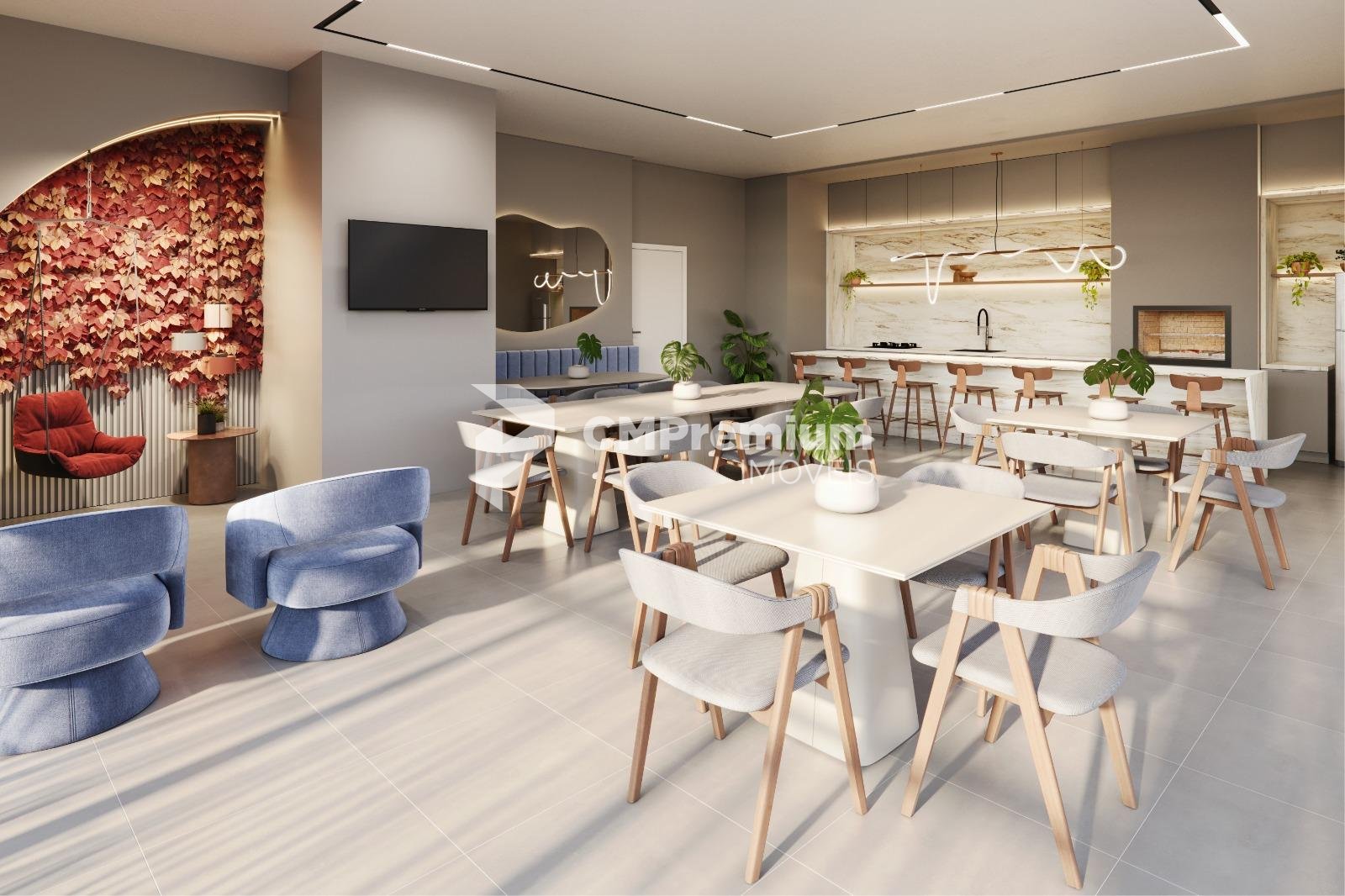 Nos apartamentos, os acabamentos reforçam a proposta contemporânea e funcional: revestimentos até o teto na cozinha, área de serviço e banheiro, piso em porcelanato e infraestrutura para ar-condicionado, garantindo mais conforto e valorização do imóvel.