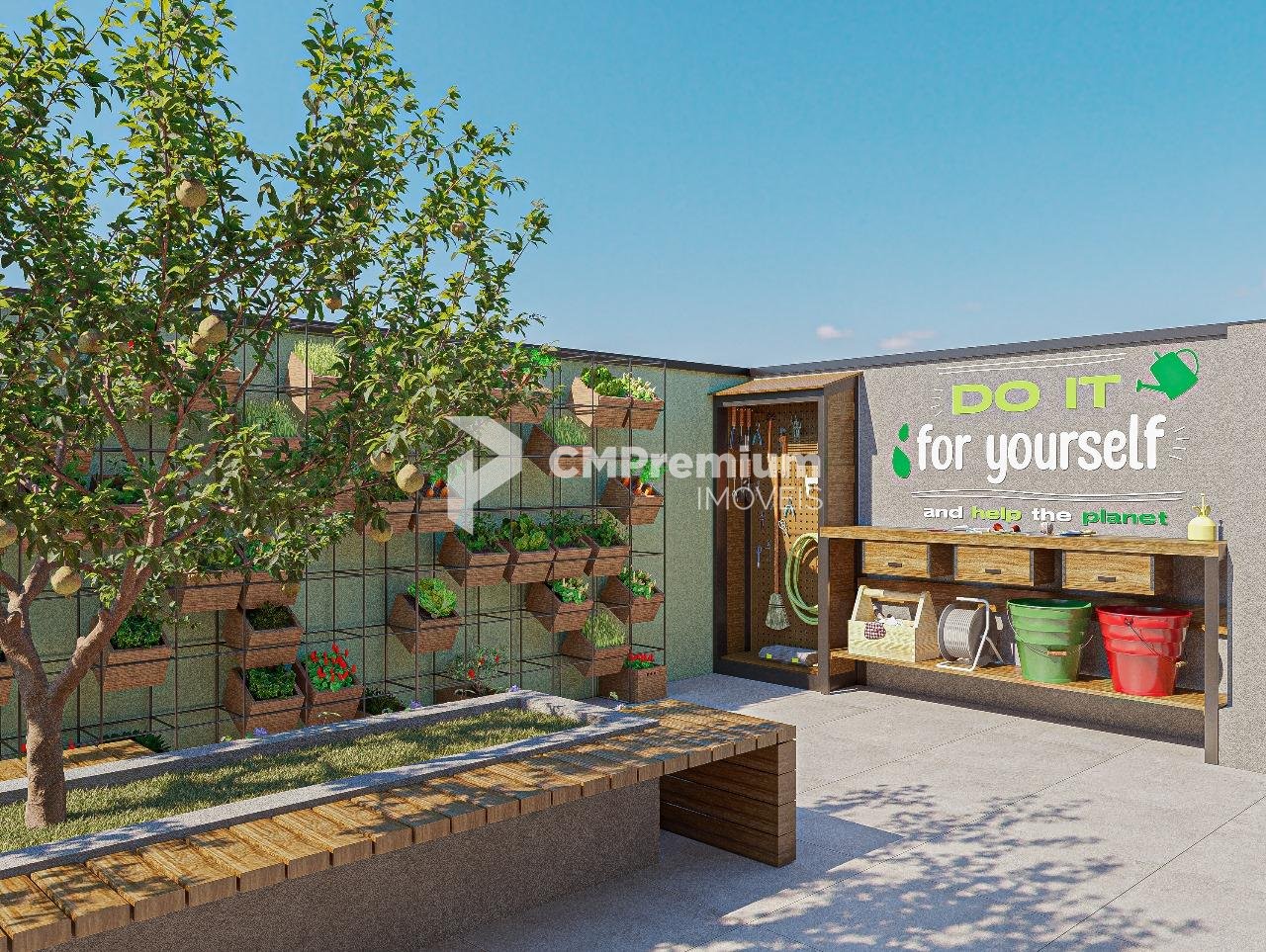 Rooftop com piscina, fireplace, wine bar, redário e horta urbana