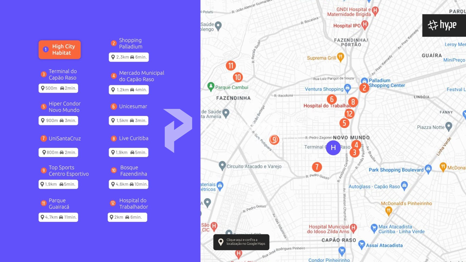 Hospital do Trabalhador: 2 km (6 min de carro)