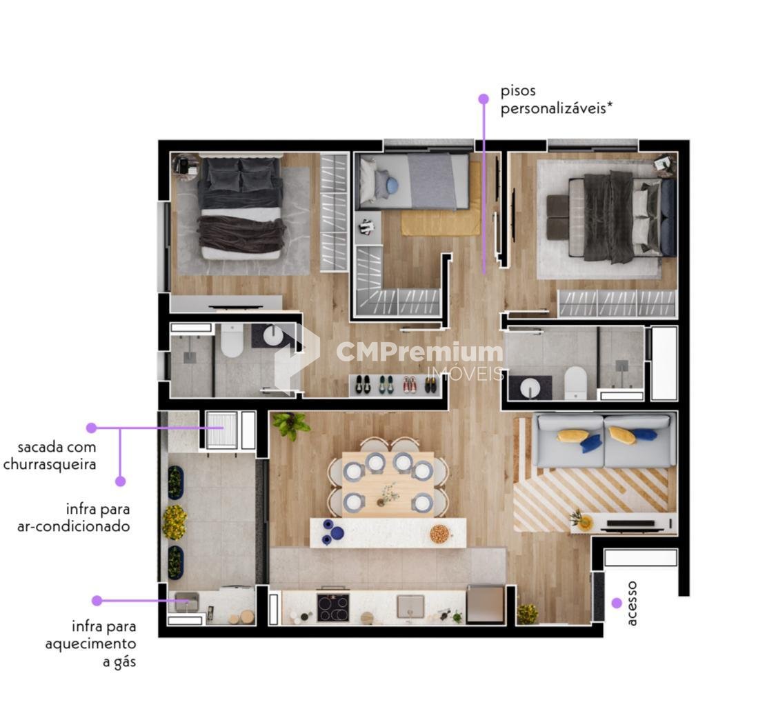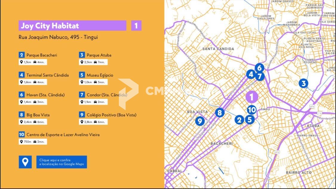 Apartamento 206 à venda, tingui, no Edf. Joy City Habitat com 3 Qtos 1Suite CURITIBA - PR