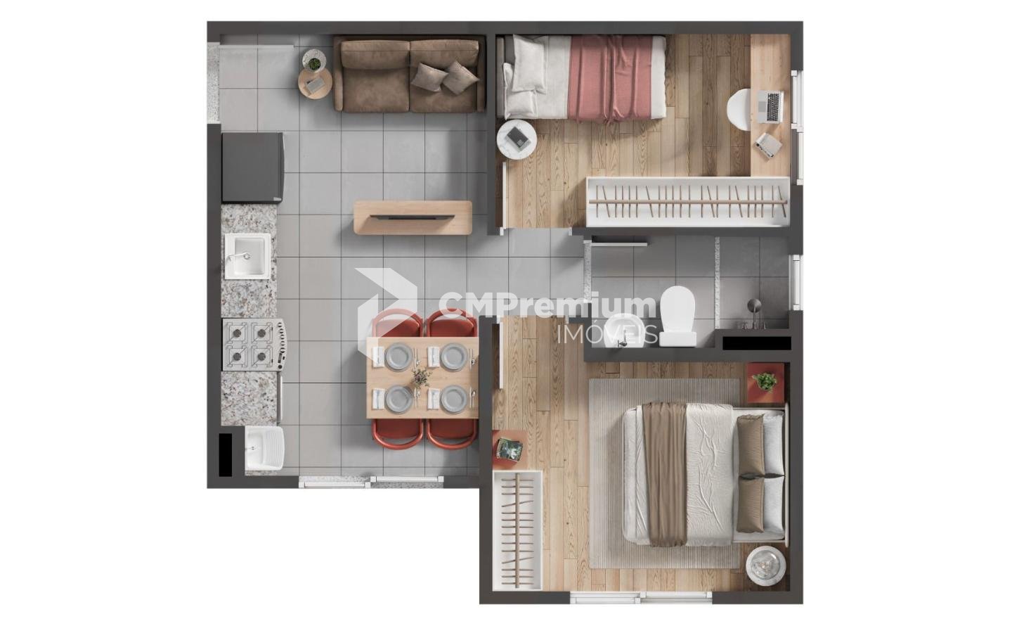 -Unidades de 2 Quartos: Espaços planejados para conforto e funcionalidade.
