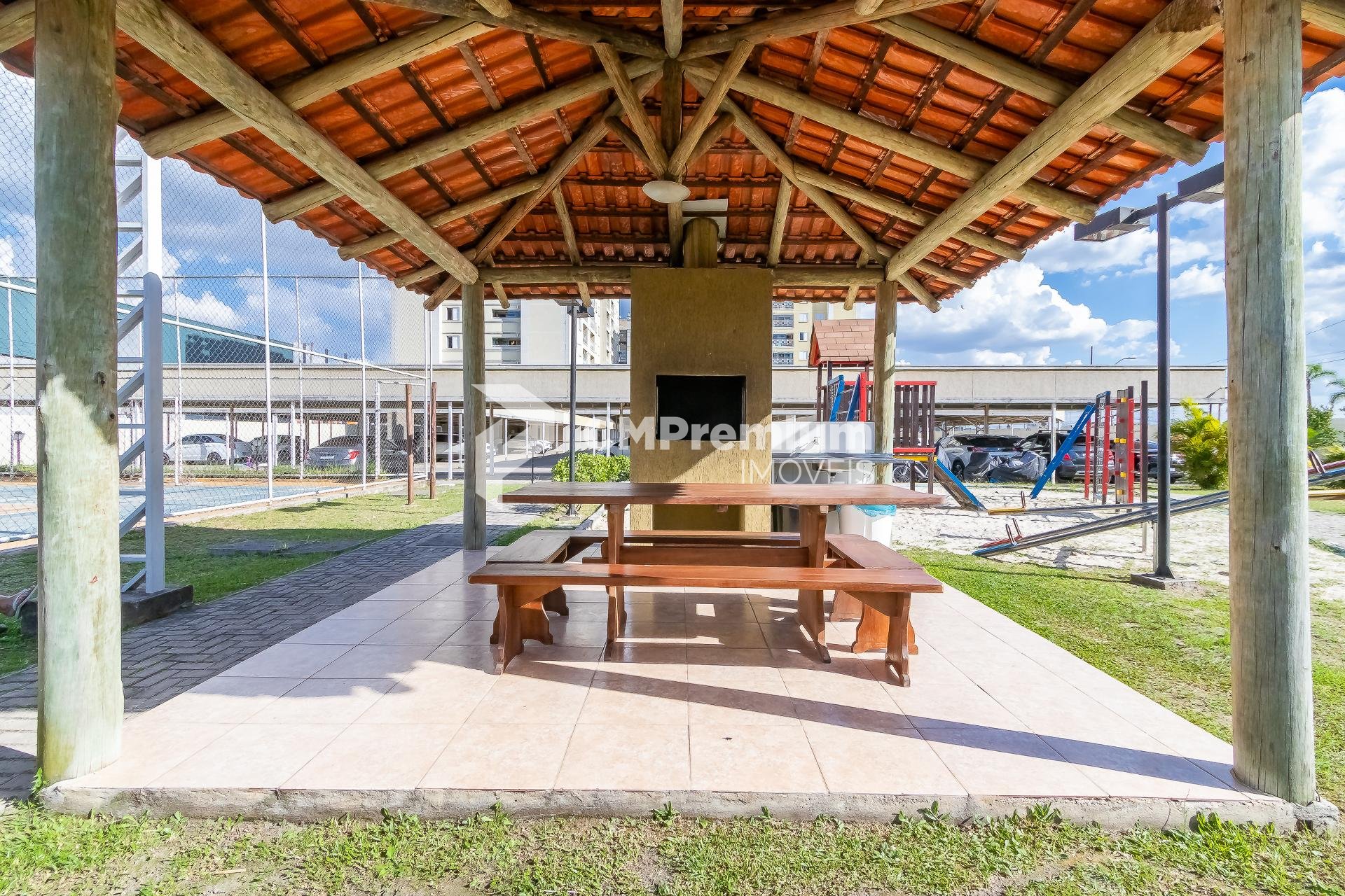 Quiosque com churrasqueira;