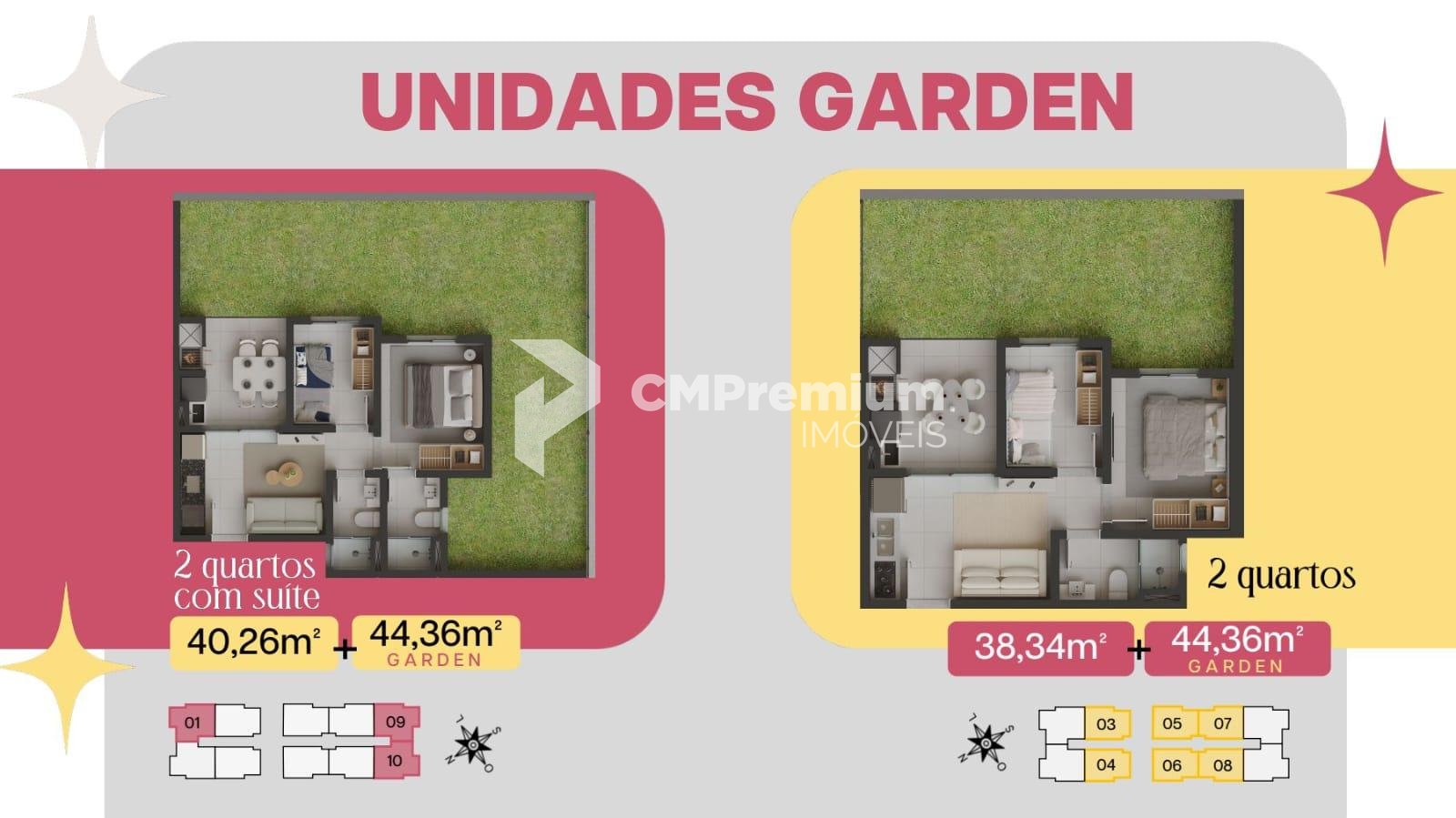 Unidades com garden de até 44,36 m²