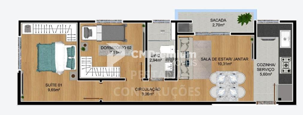 Opção 1 (área construída 49m² no valor R$ 295.500,00)