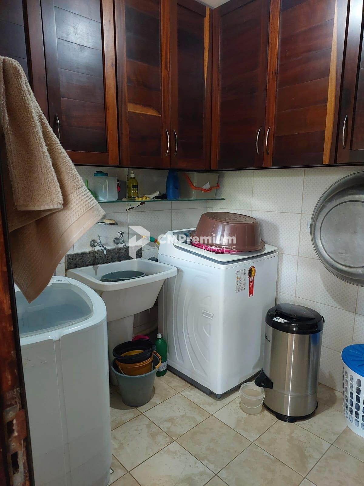 A lavanderia é planejada com armários sob medida, oferecendo funcionalidade máxima. Cada detalhe da casa reflete qualidade e sofisticação: laje no teto, estrutura robusta, portas de madeira maciça e acabamentos em gesso.