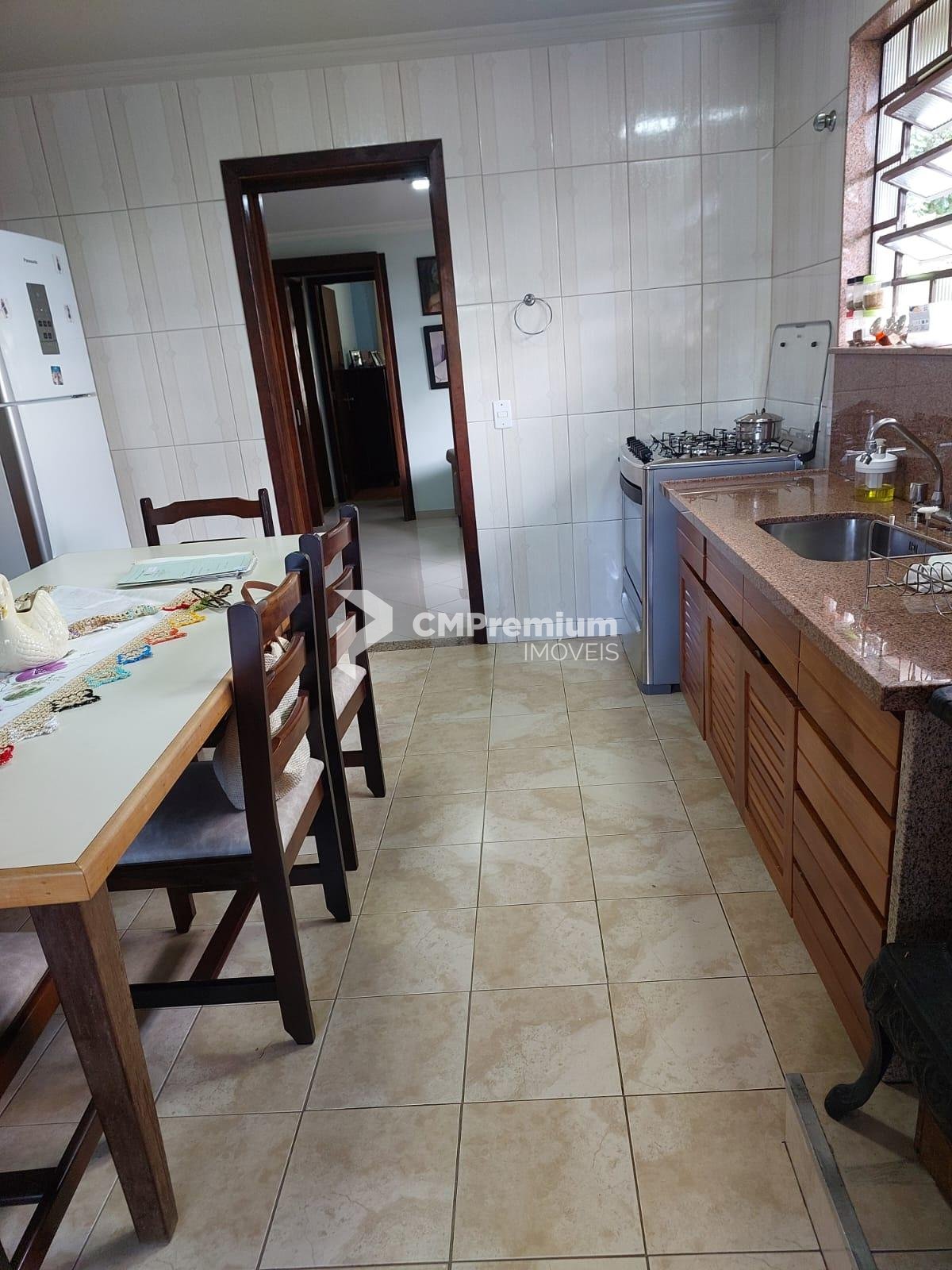 No interior, você encontrará 3 dormitórios, sendo uma suíte, 2 banheiros e uma sala ampla para visitas e jantar, ideal para momentos em família. A cozinha equipada com pia de granito e armários planejados, conectada ao amplo espaço gourmet, é perfeita para receber amigos.