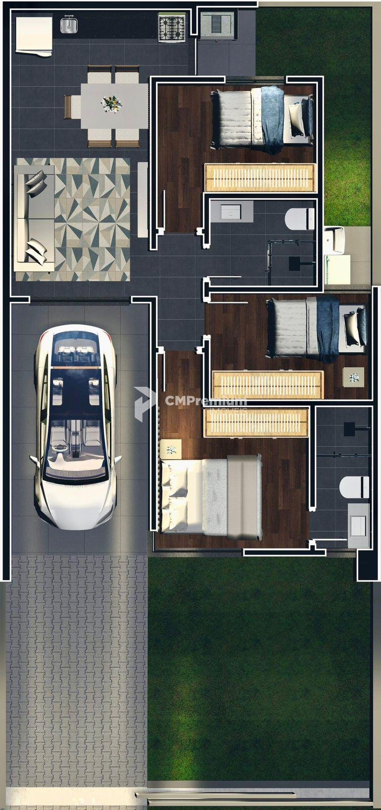 - 03 quartos, sendo uma suíte e dois quartos.