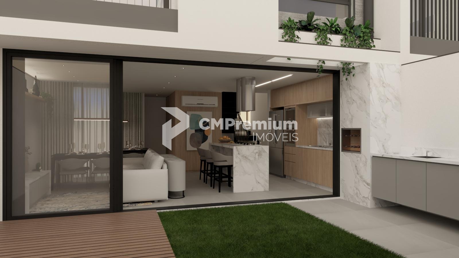 Ambientes amplos e integrados, com porcelanato, forro de gesso, churrasqueira a carvão e infraestrutura para ar-condicionado e carregamento de veículos elétricos.