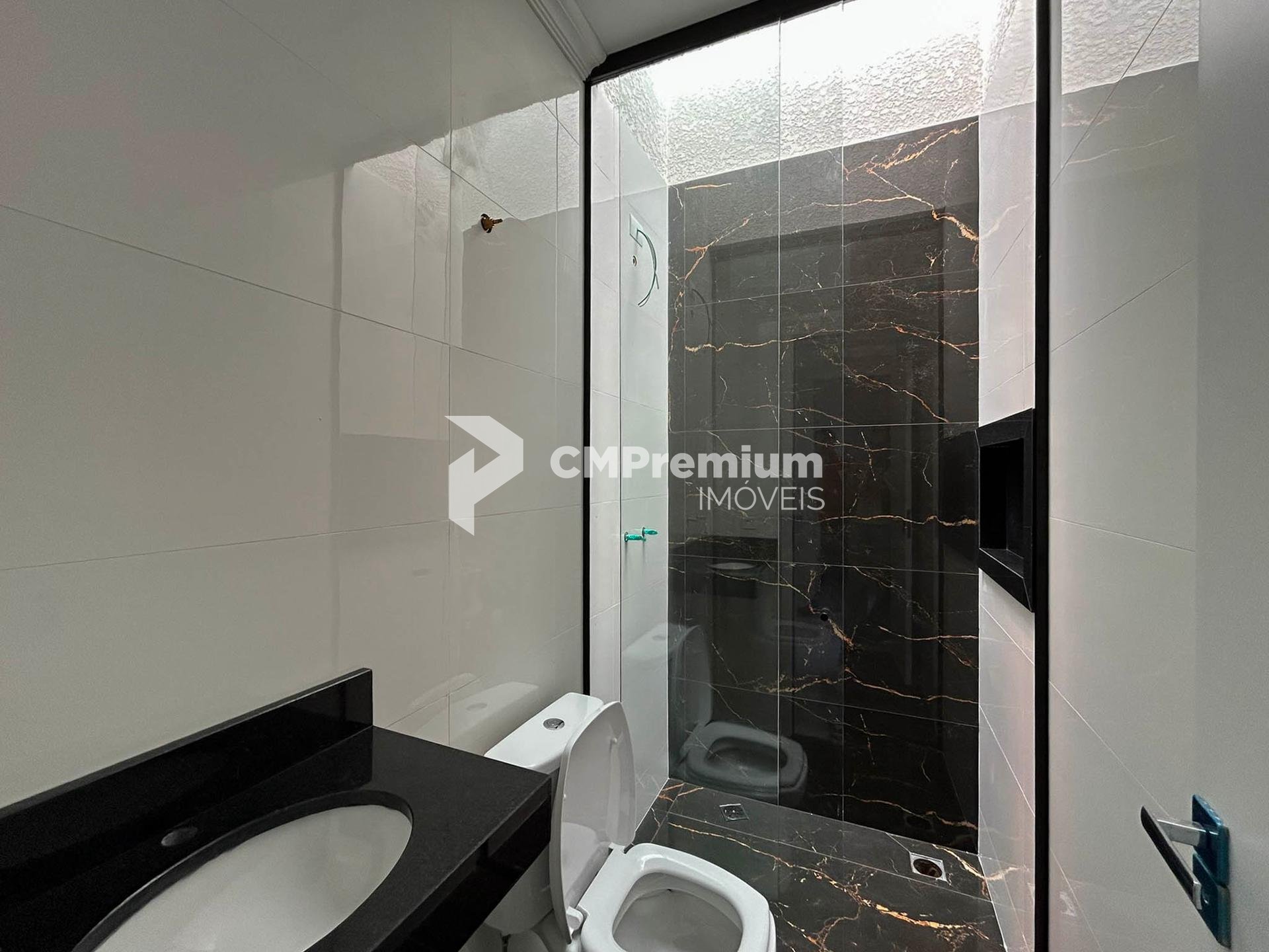 Banheiros com box em vidro e acabamento refinado