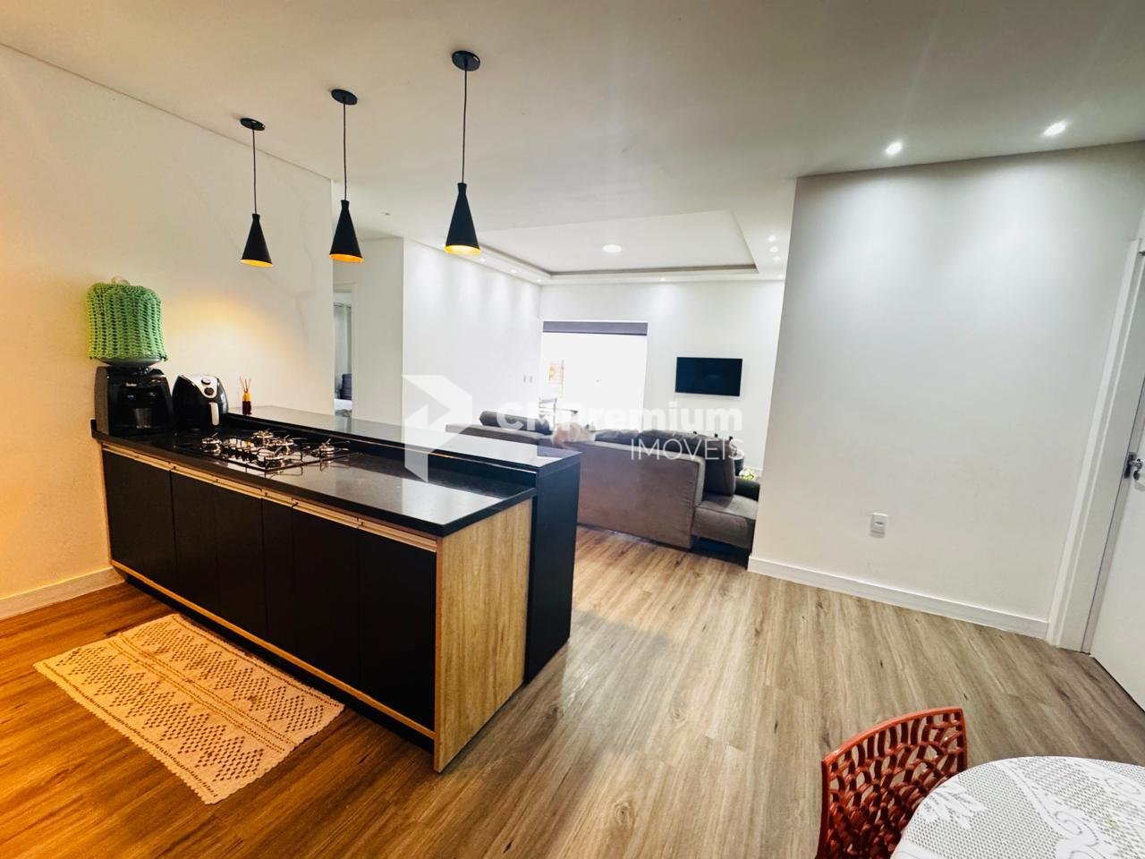 A área social é um convite à convivência: sala e cozinha em conceito aberto, com excelente aproveitamento de espaço e acabamento refinado. As portas de correr em vidro fumê em toda a fachada frontal ampliam a sensação de liberdade e integram o ambiente à área externa - perfeita para receber.