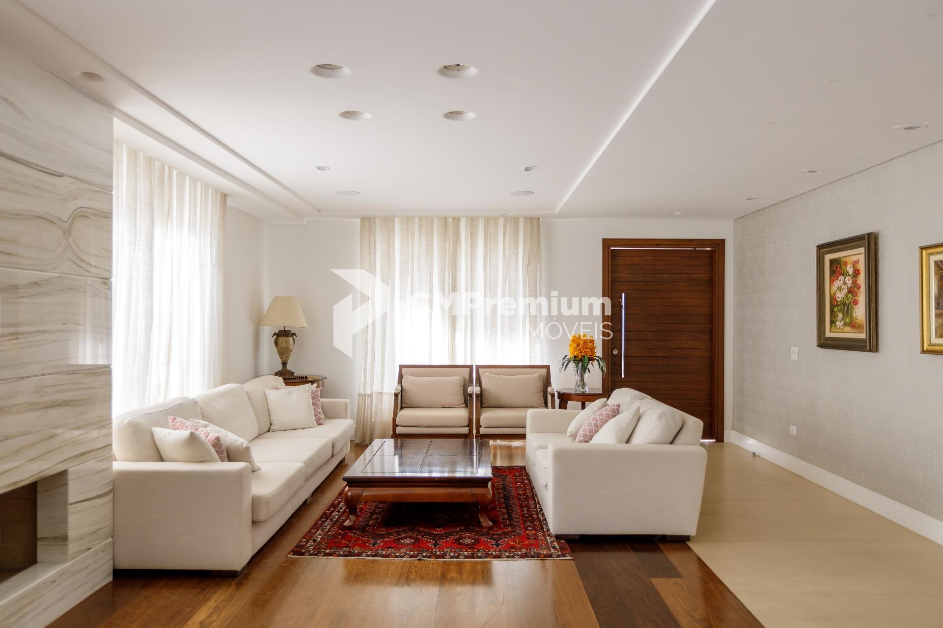 Na área íntima, são 4 suítes generosas, com destaque para a suíte máster, que impressiona pelos acabamentos e marcenaria sob medida. Ao todo, são 6 banheiros, incluindo lavabo e banheiro de serviço, todos distribuídos de forma funcional.