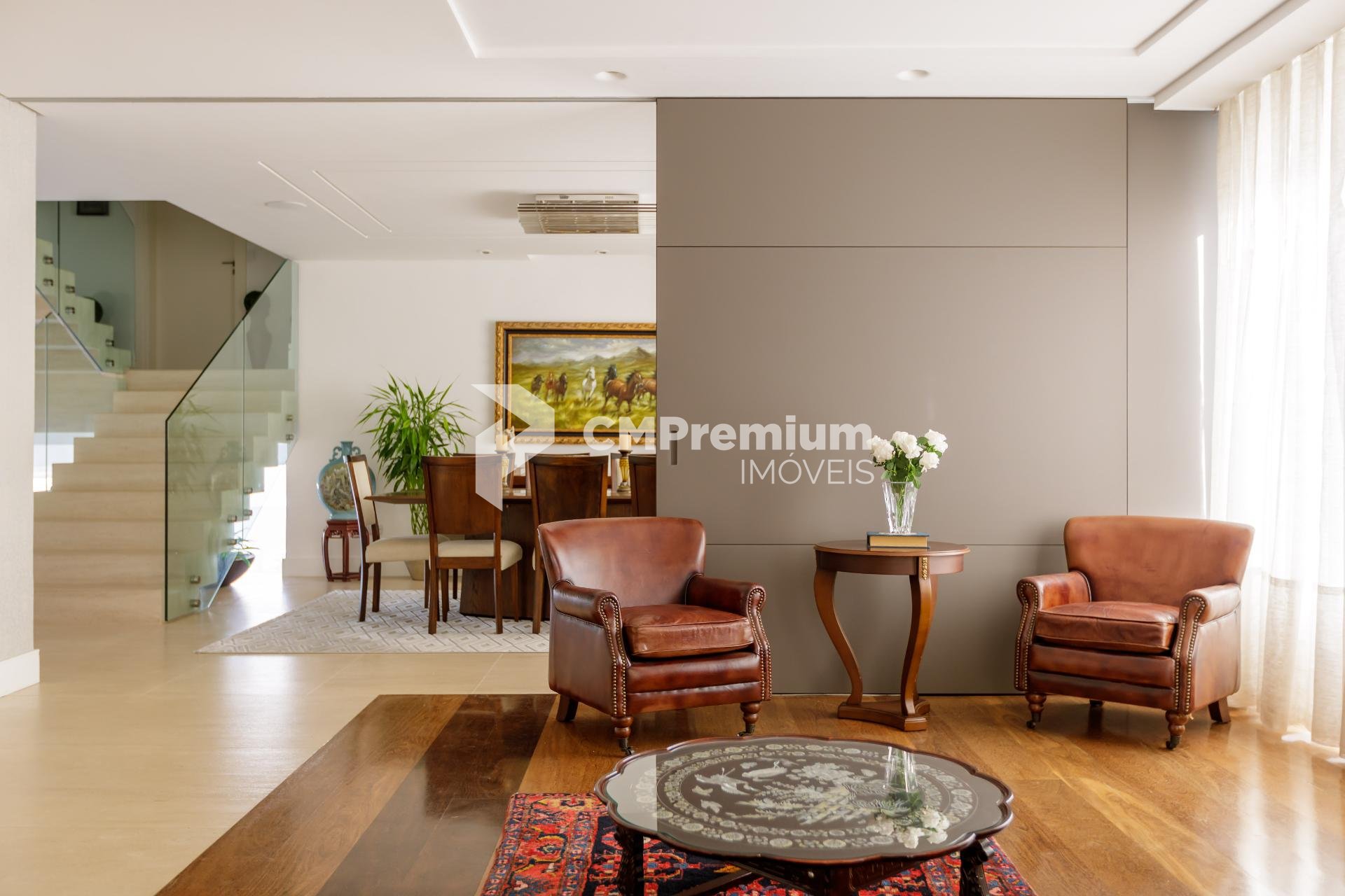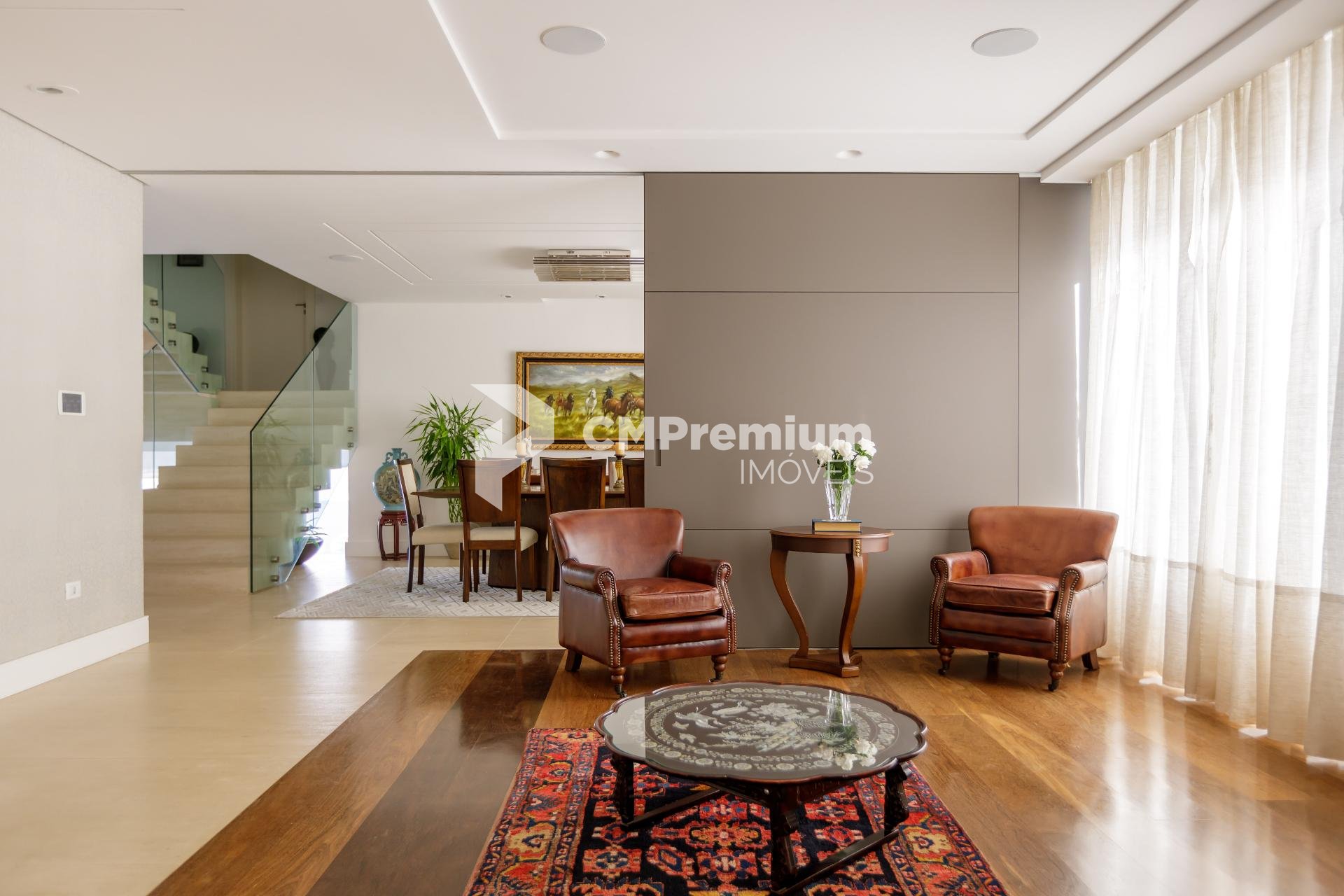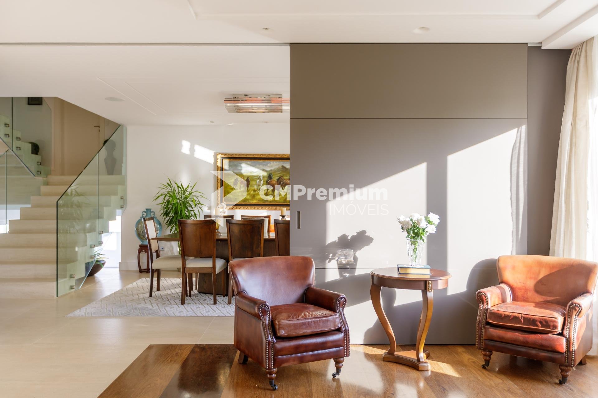 Porta de correr Cinex isolando sala de estar e jantar