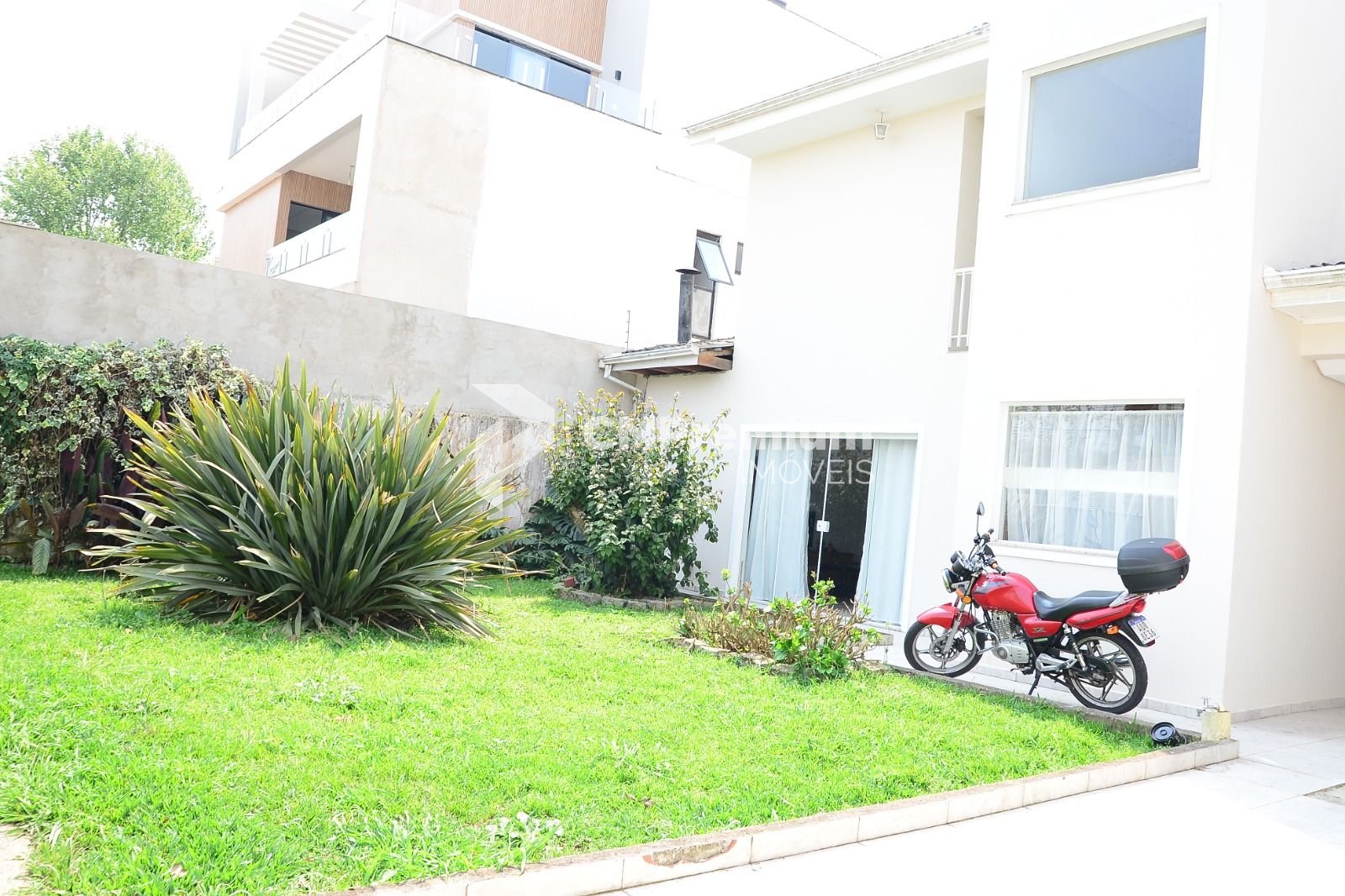 Quintal gramado e jardim frontal, que trazem frescor e contato com a natureza