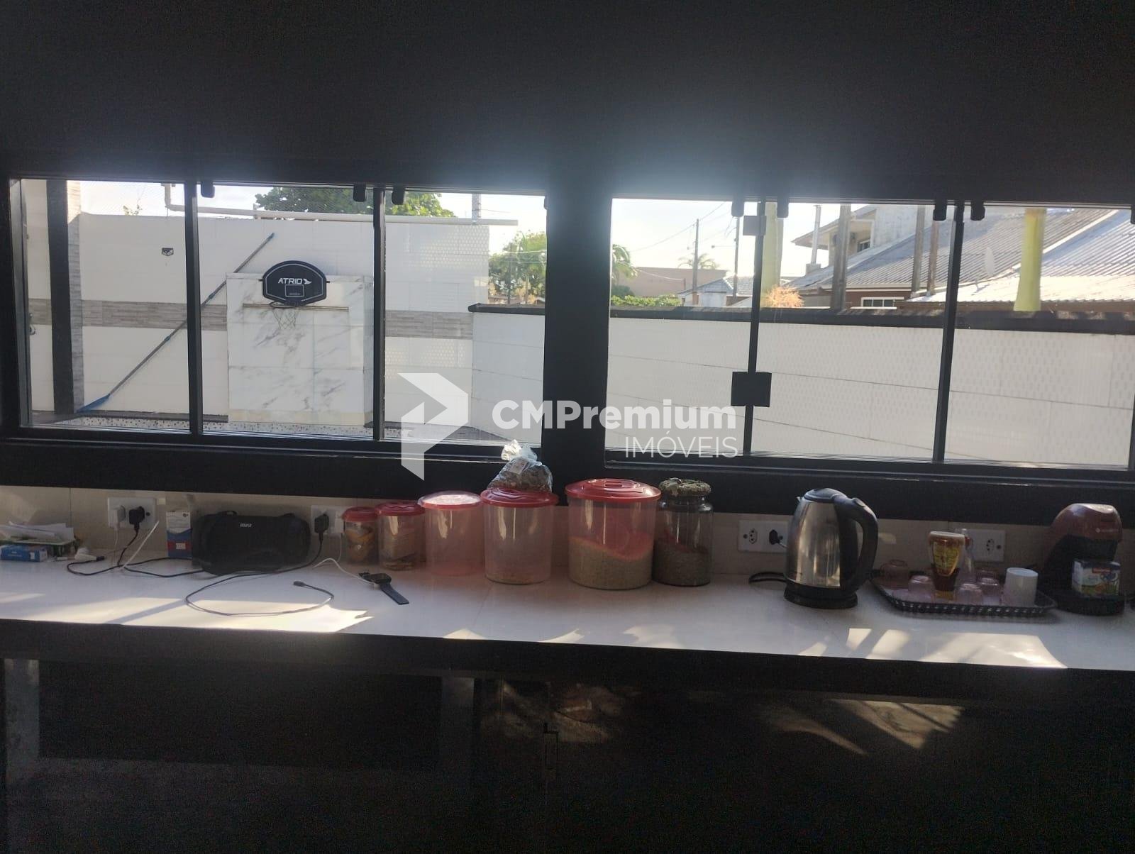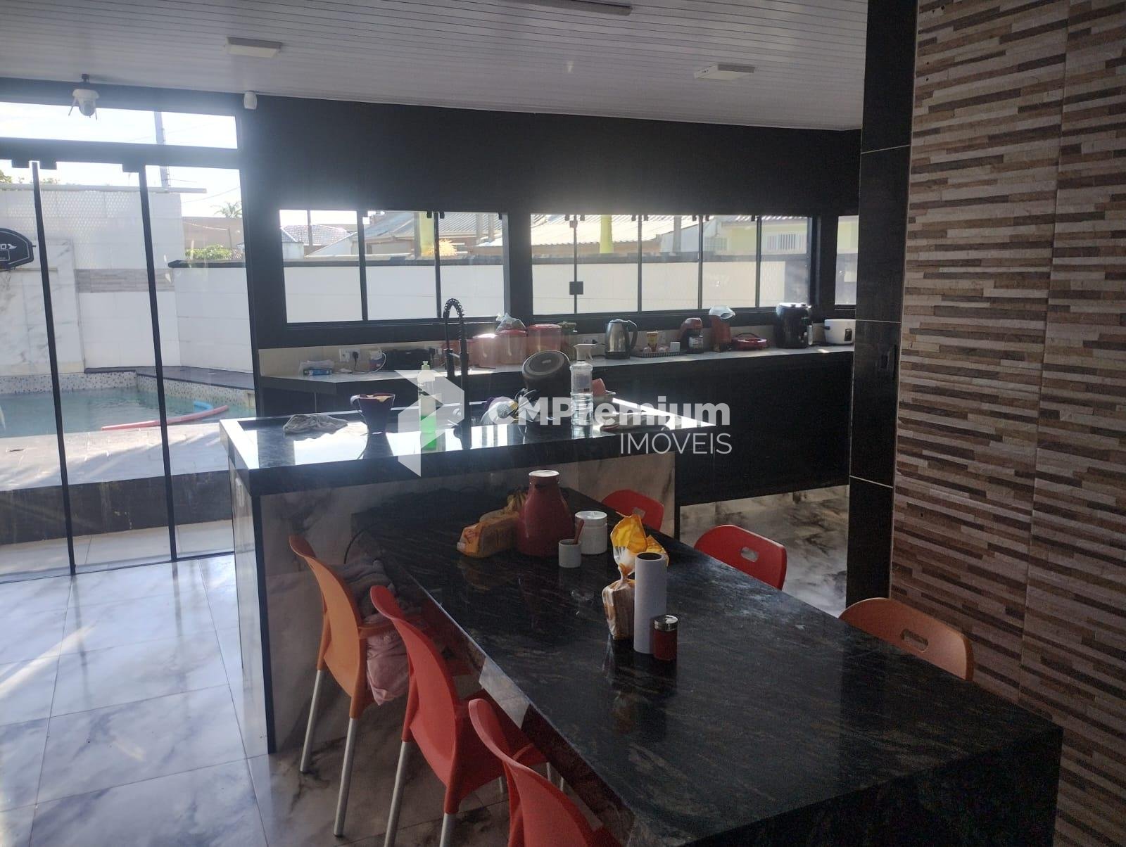Cozinha conceito aberto: totalmente em alvenaria, com portas de vidro, ilha central com bancada de granito integrada ao espaço gourmet.