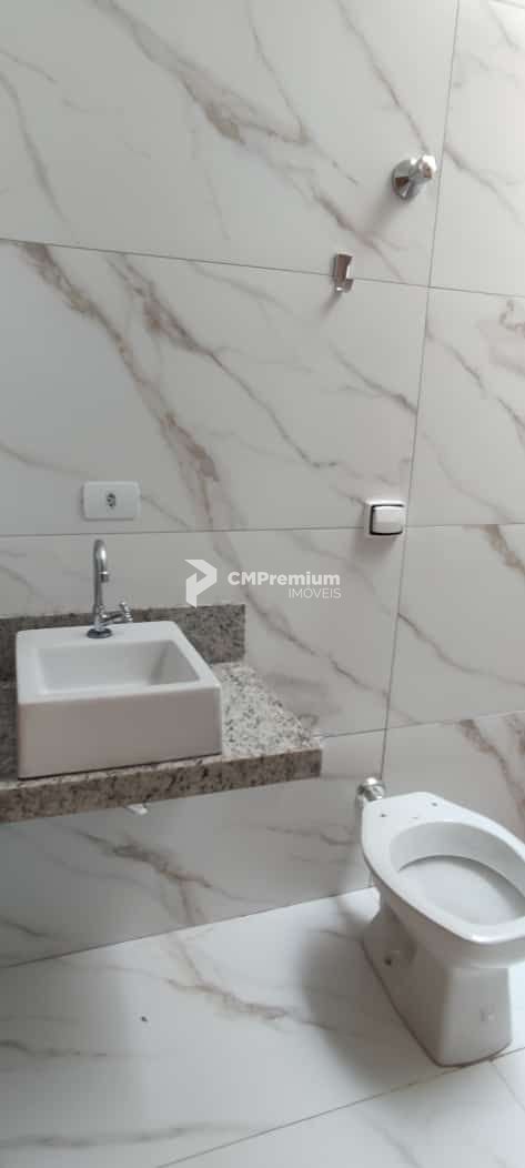 Banheiro social bem acabado;