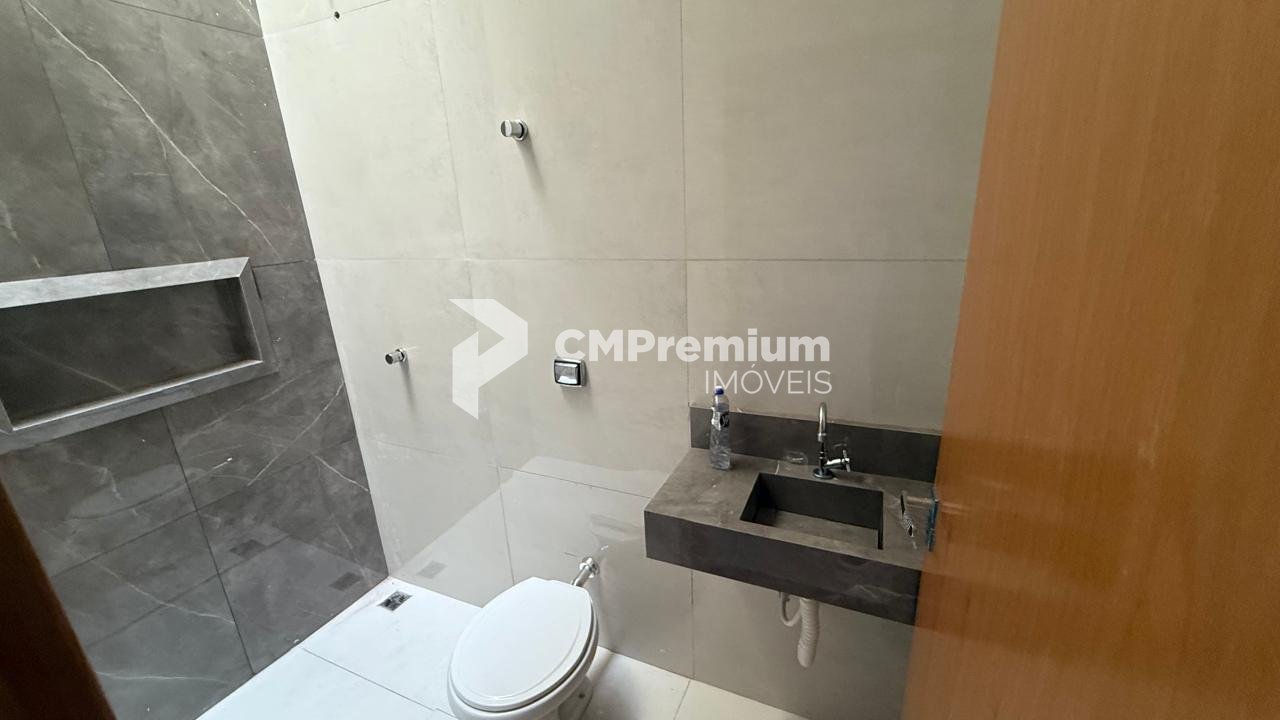Banheiro social moderno, com acabamento de qualidade;