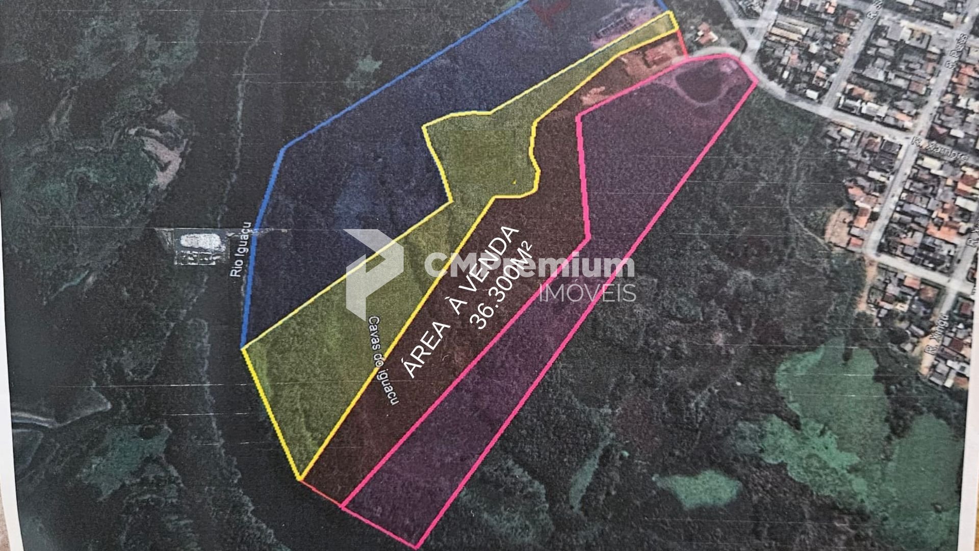 A propriedade conta com água encanada, rede de esgoto da Sanepar e energia elétrica, além de fazer fundos com o Rio Iguaçu e possuir algumas cavas.
