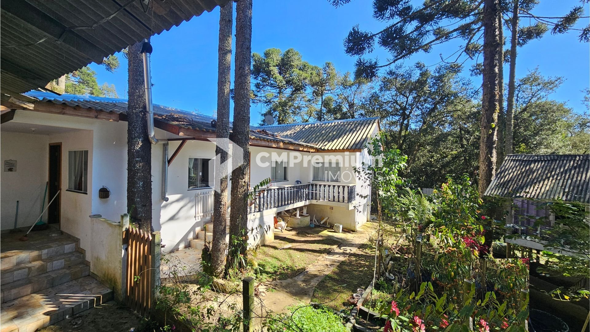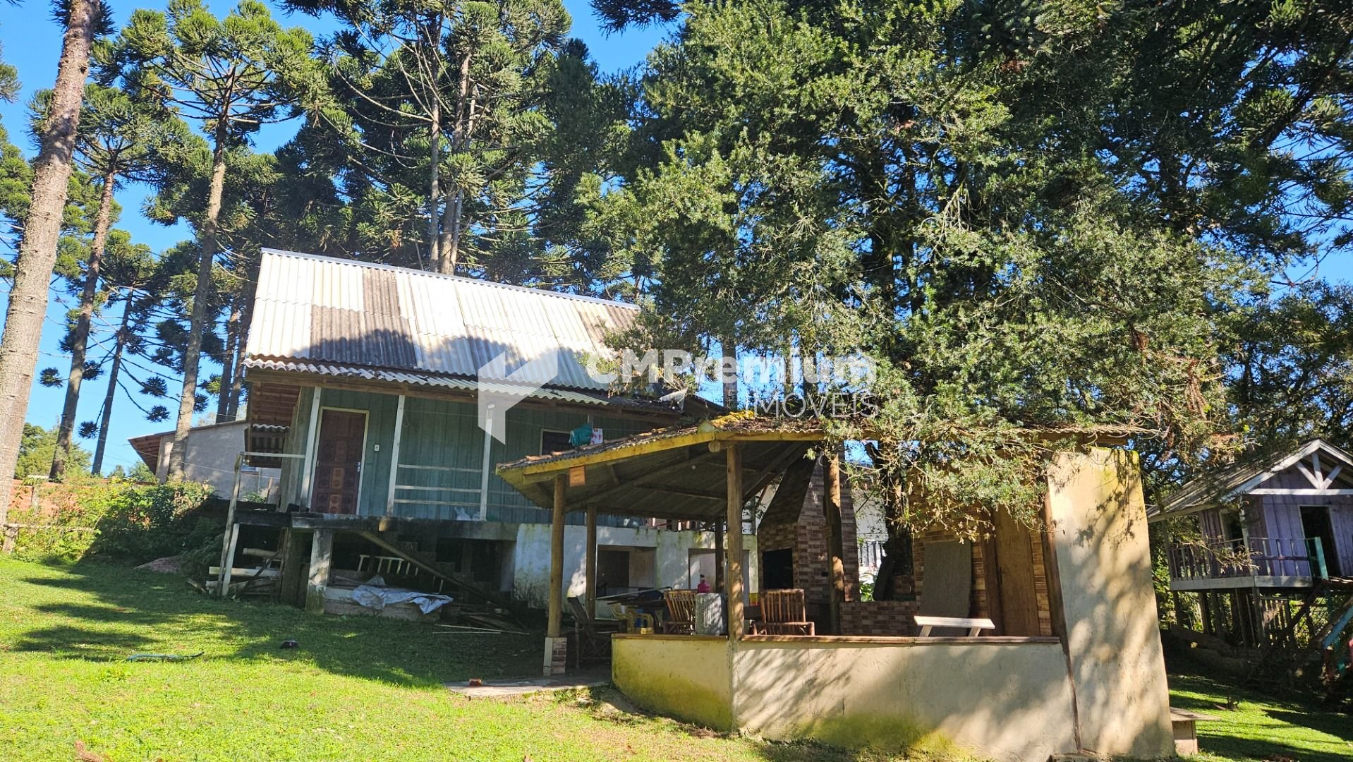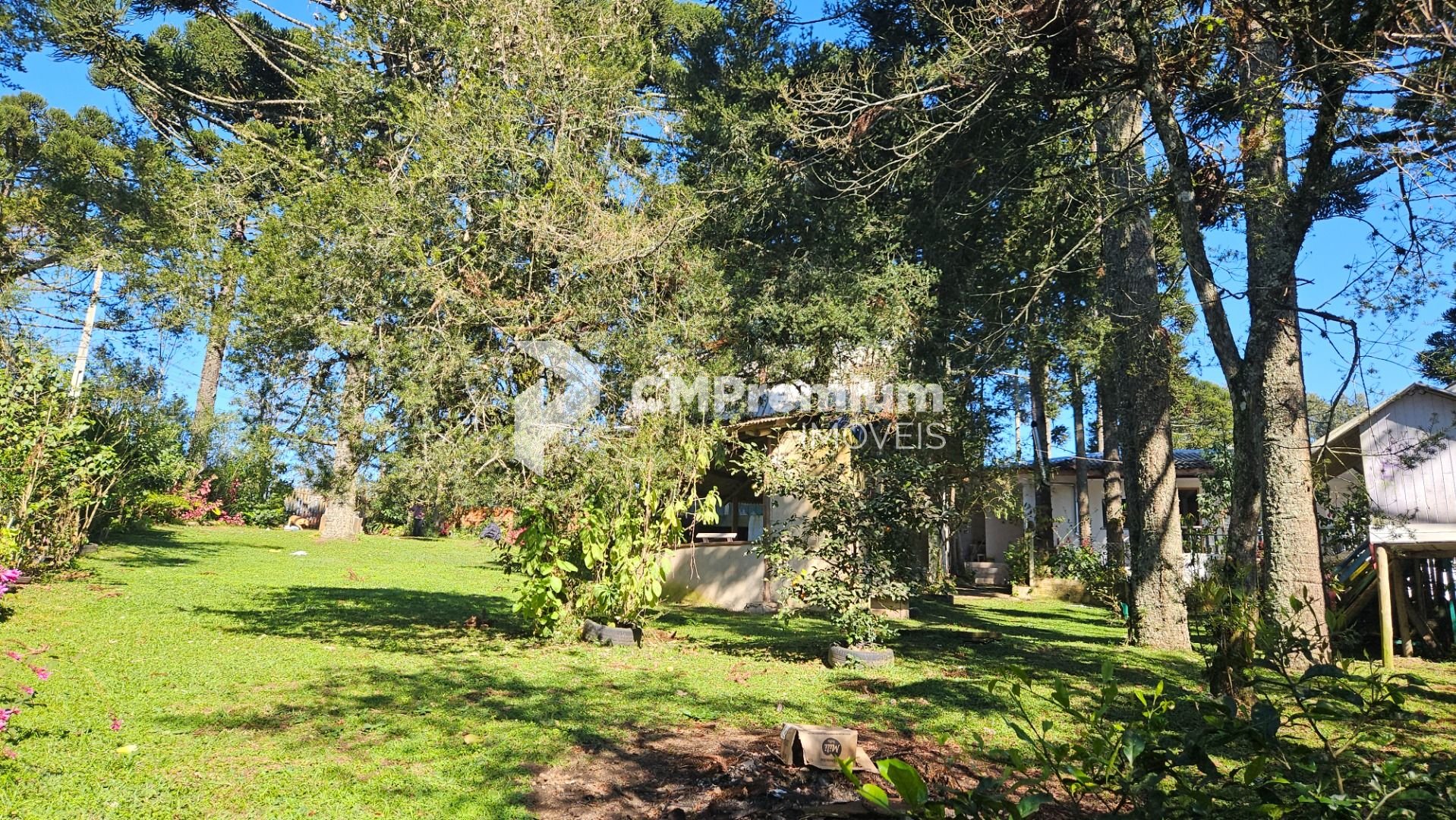 Natureza abundante: várias araucárias em plena produção e árvores frutíferas, como mexerica, limão e pitanga