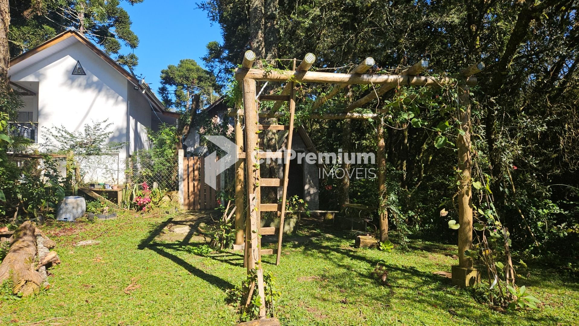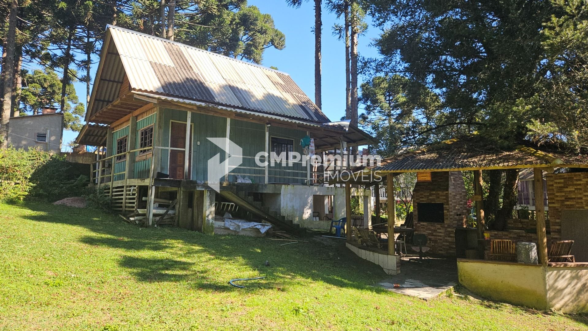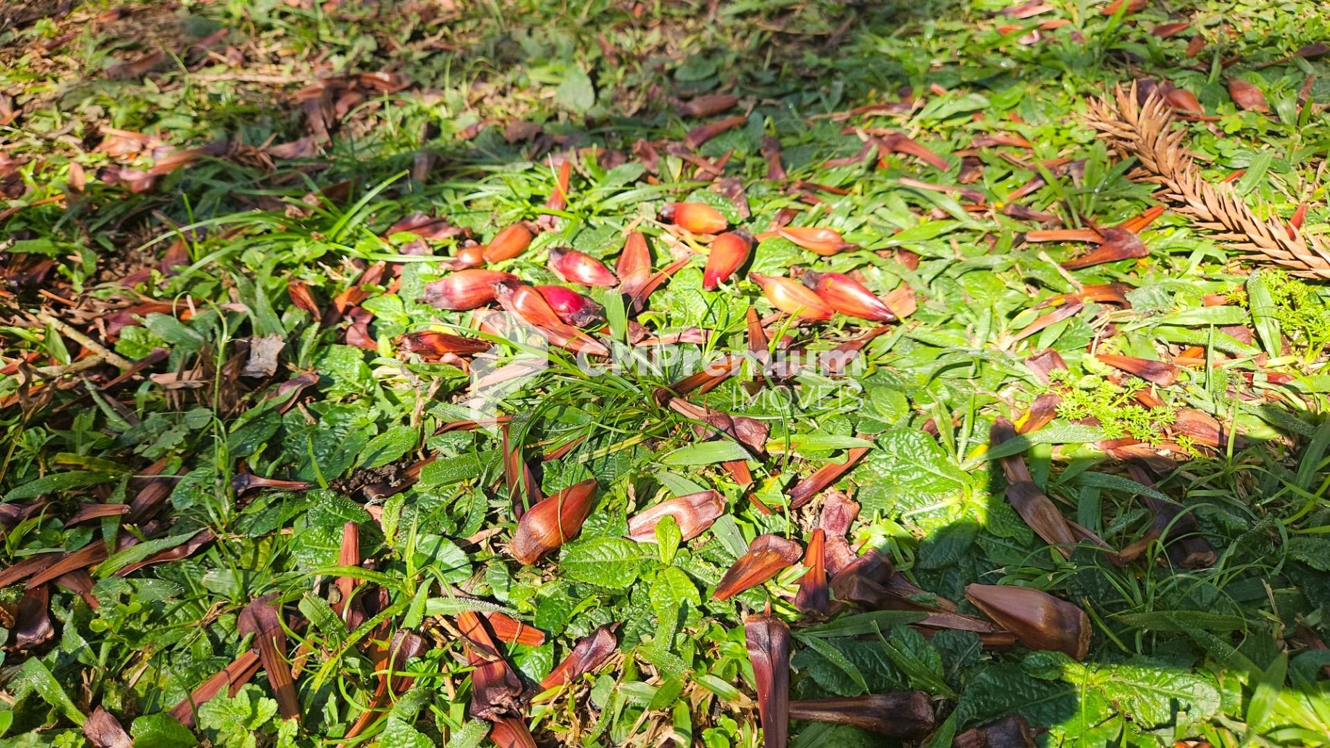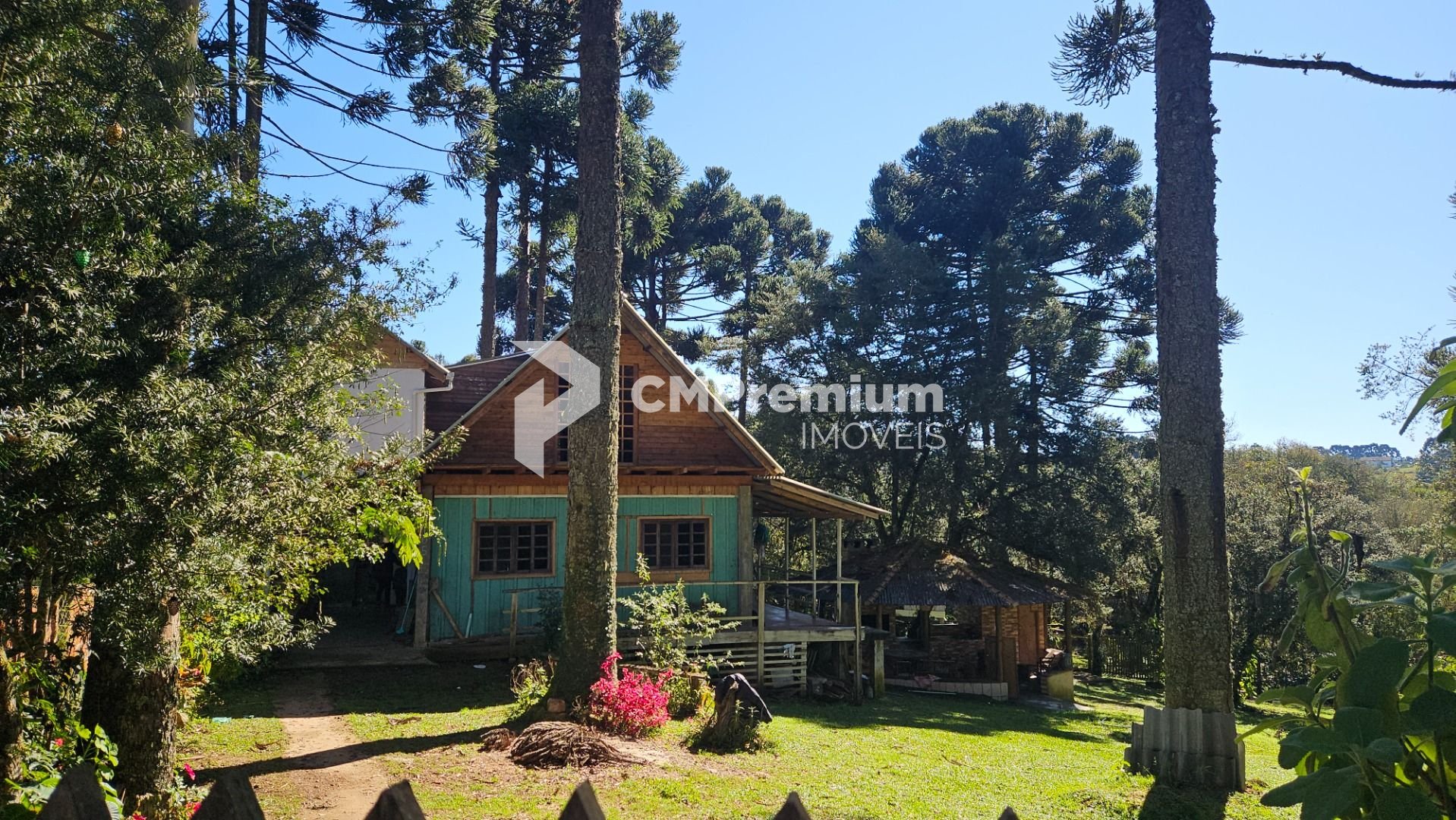 Natureza abundante: várias araucárias em plena produção e árvores frutíferas, como mexerica, limão e pitanga