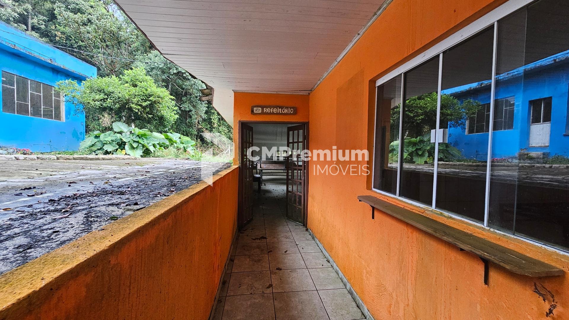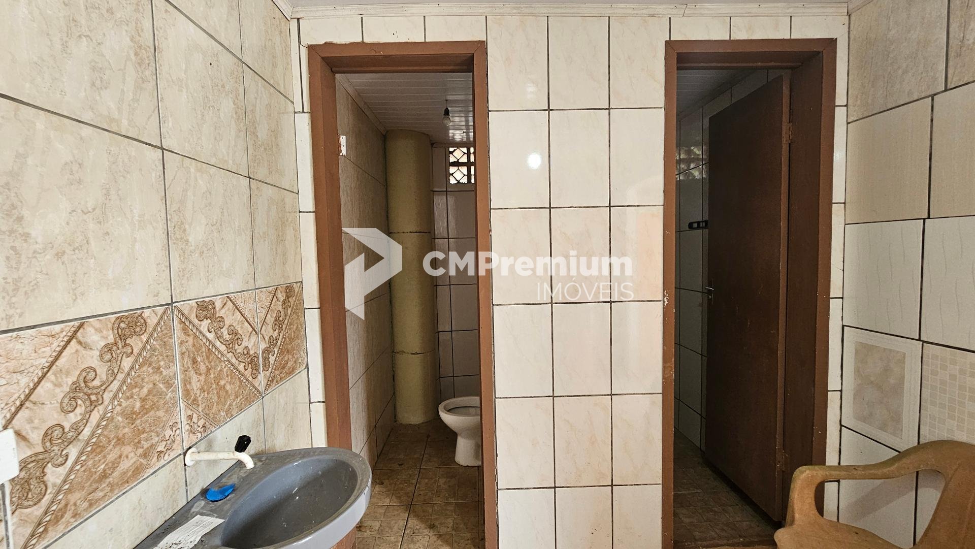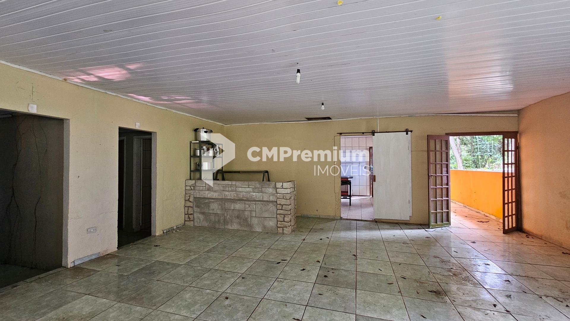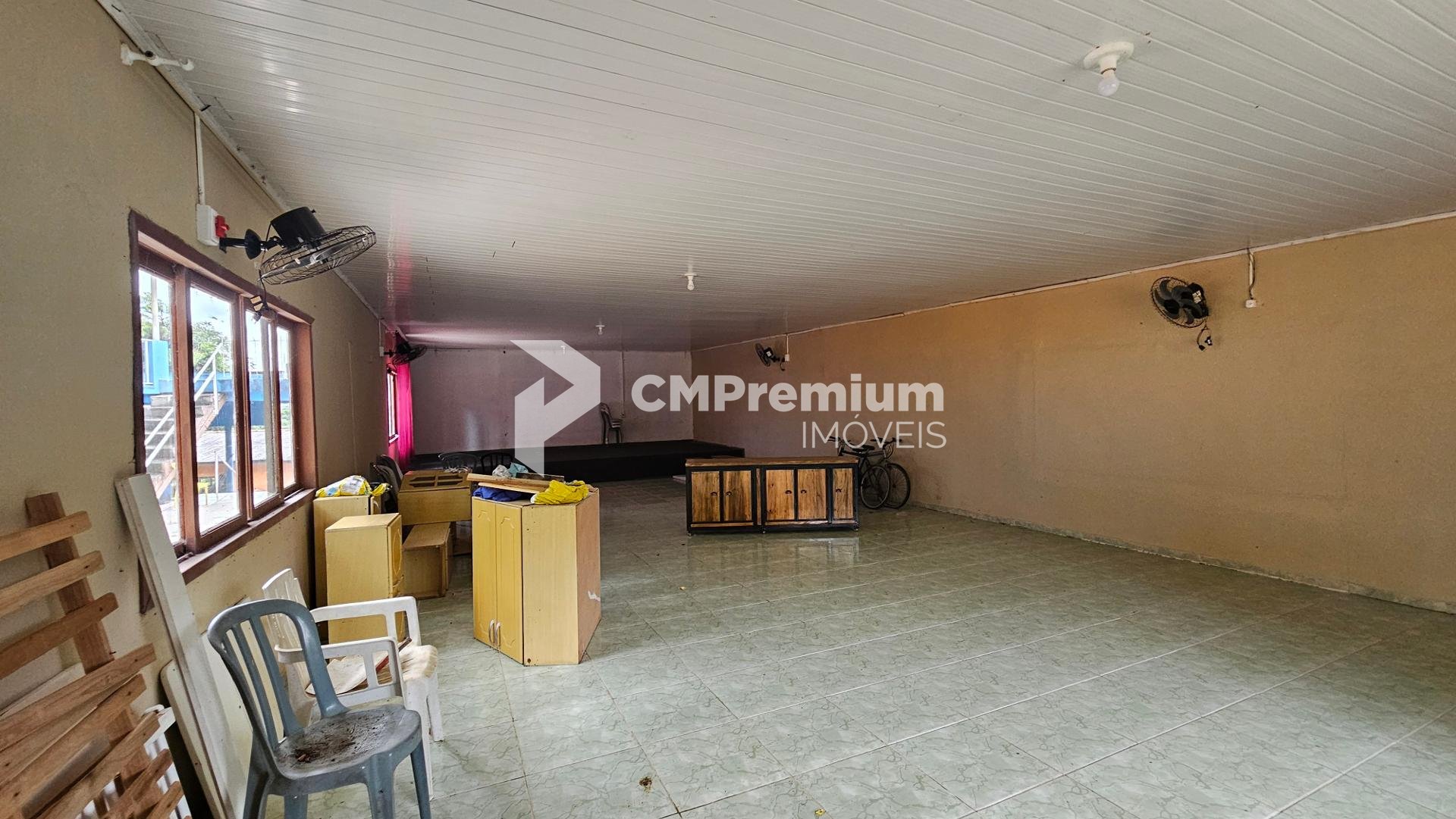 Salão para eventos com espaço coberto e 4 banheiros (2 masculinos e 2 femininos)