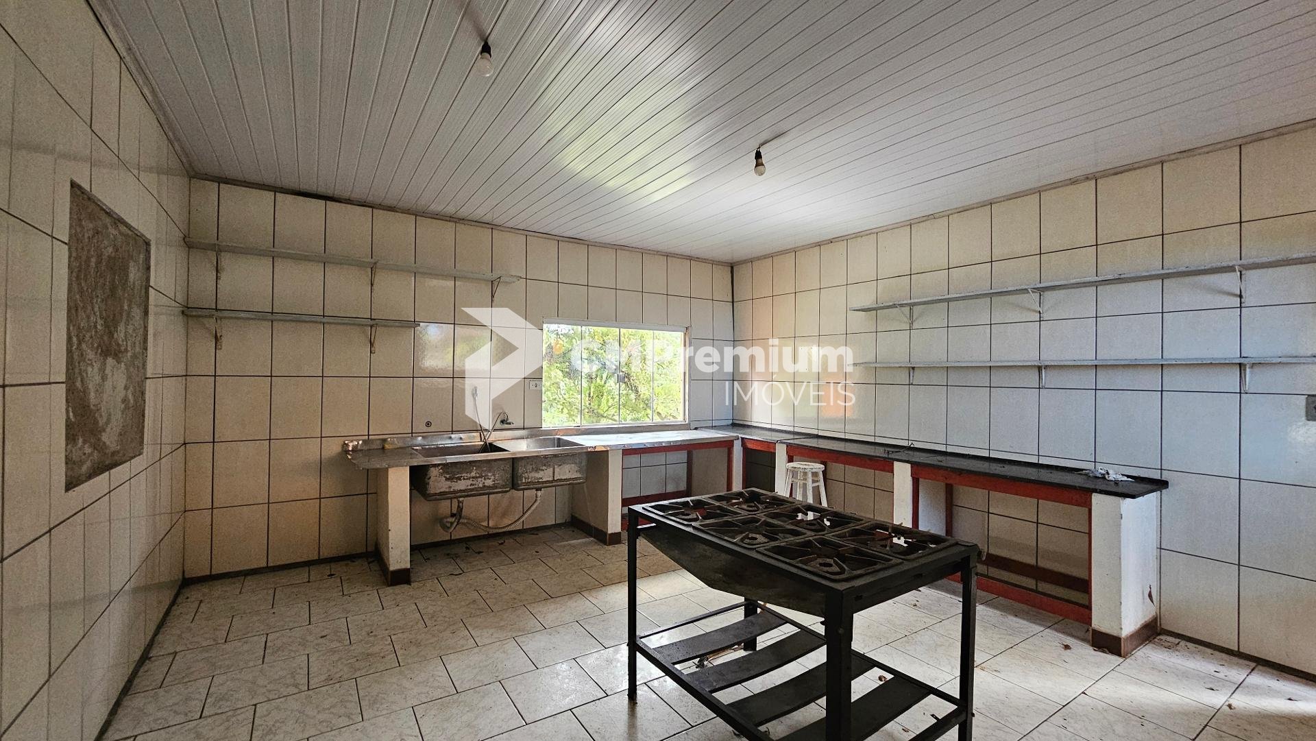 Salão grande com cozinha industrial e 4 banheiros (2 masculinos e 2 femininos)