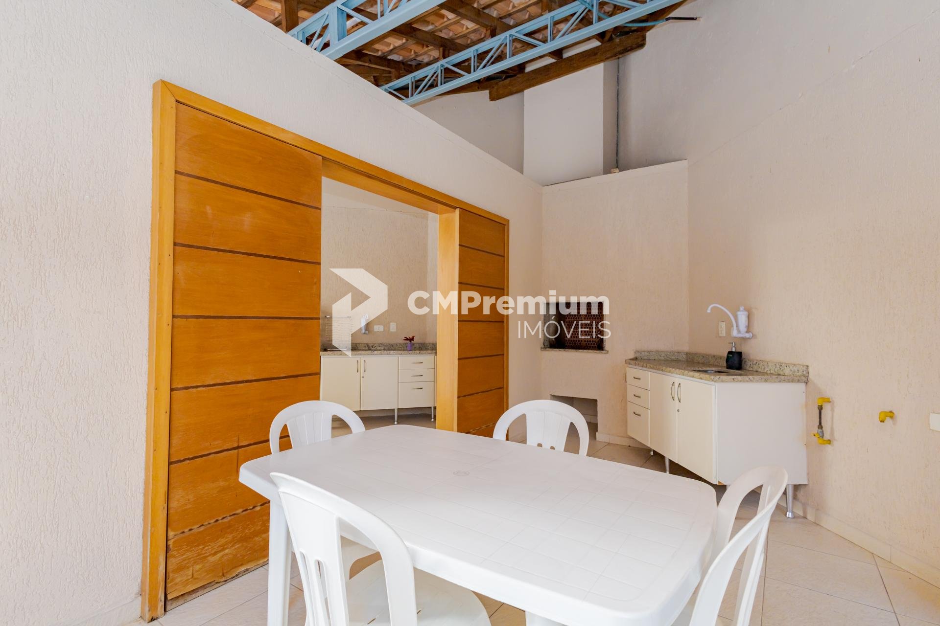 Salão de festas com churrasqueira