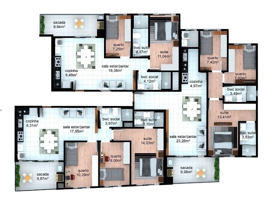 2 ou 3 dormitorios com suite, todos ambientes com preparacao para ar condicionado, infra para jacuzzi no terracao, linda vista da regiao.Agende ja sua visita e venha se encantar com essa linda cobertura.Servicos e lazer,Park Shopping Barigui - 1200mMercadoteca - 1200mFestval Champagnat - 2,5kmCondor - 1500mColegio Positivo JR - 2,9kmParque Barigui - 1600m