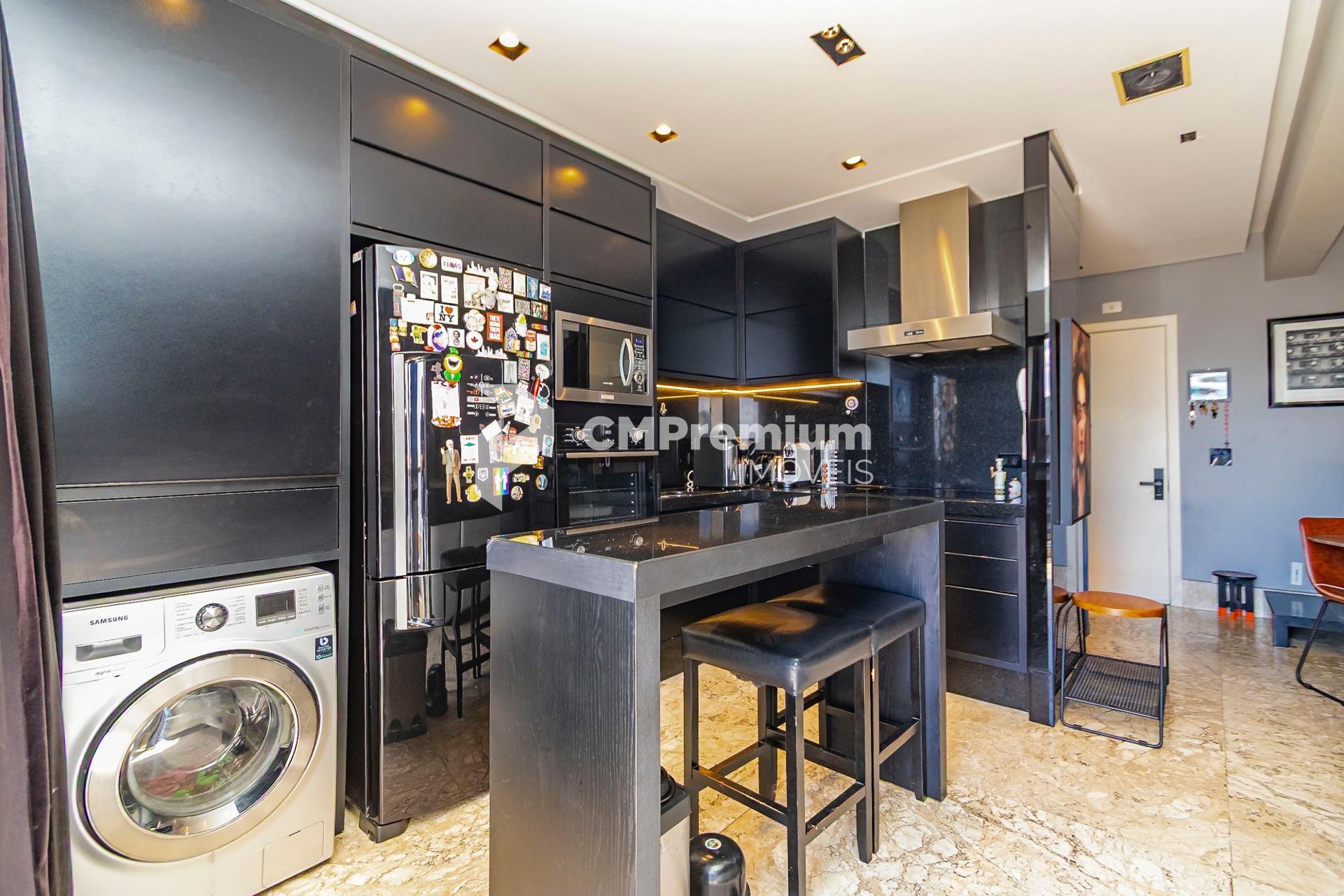 Sala integrada à cozinha, com conceito aberto;