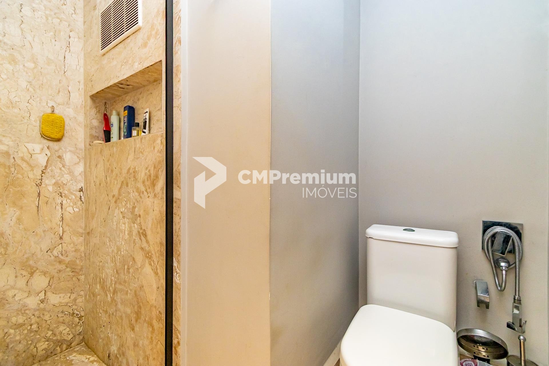 Acabamentos sofisticados: mármore no térreo e piso em madeira maciça no mezanino;