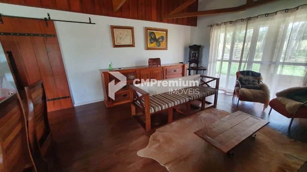 Casa principal com sótão, 3 quartos (sendo uma suíte), garagem pra 4 carros e churrasqueira. Com lareira e fogão a lenha, com aquecedor de água.