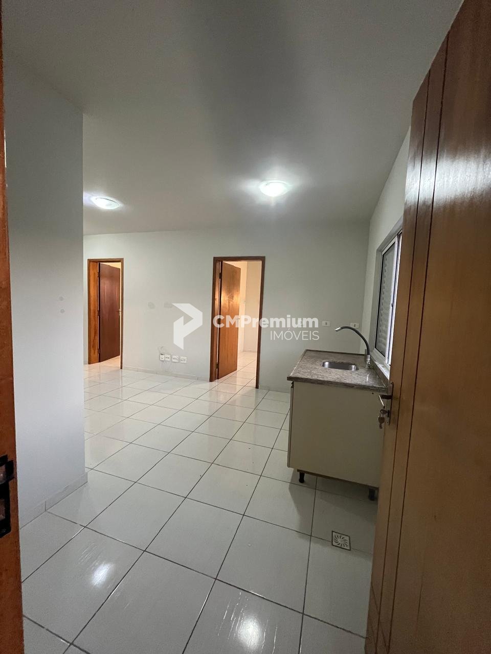 Sala integrada à cozinha, proporcionando ambiente prático e acolhedor