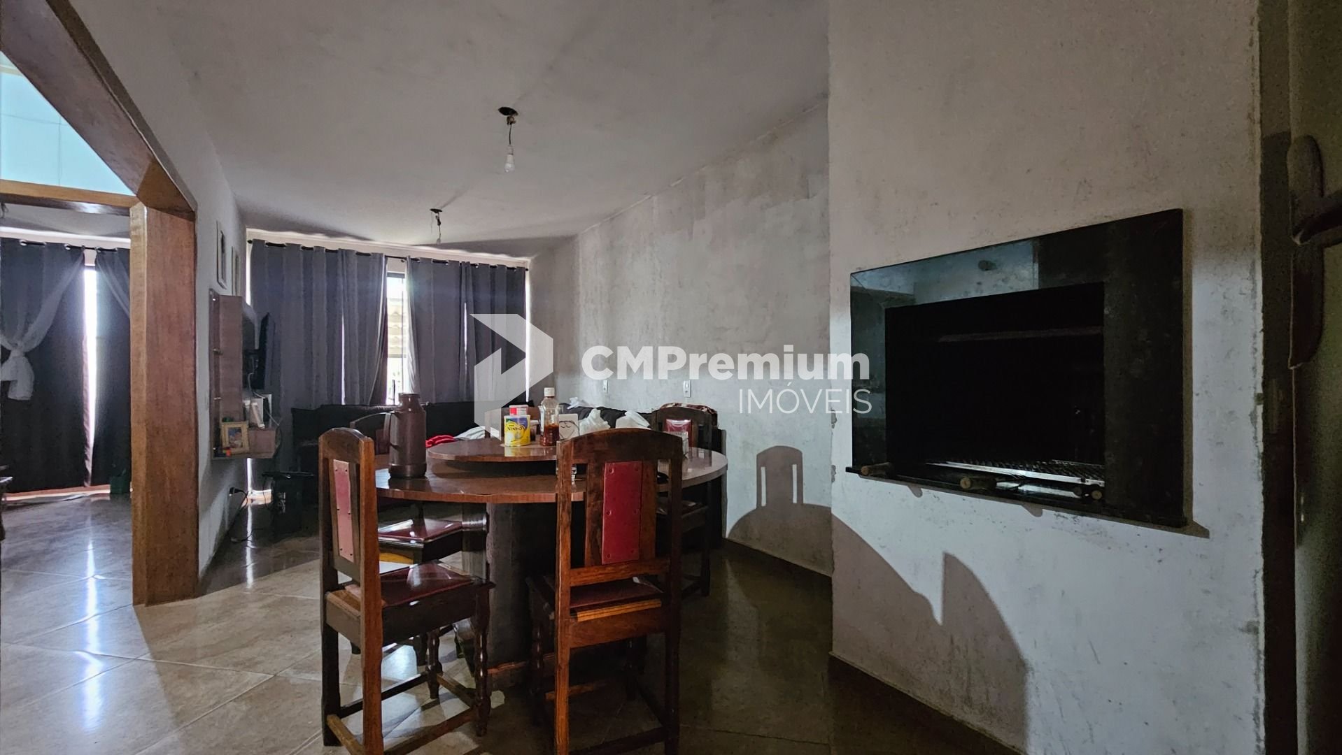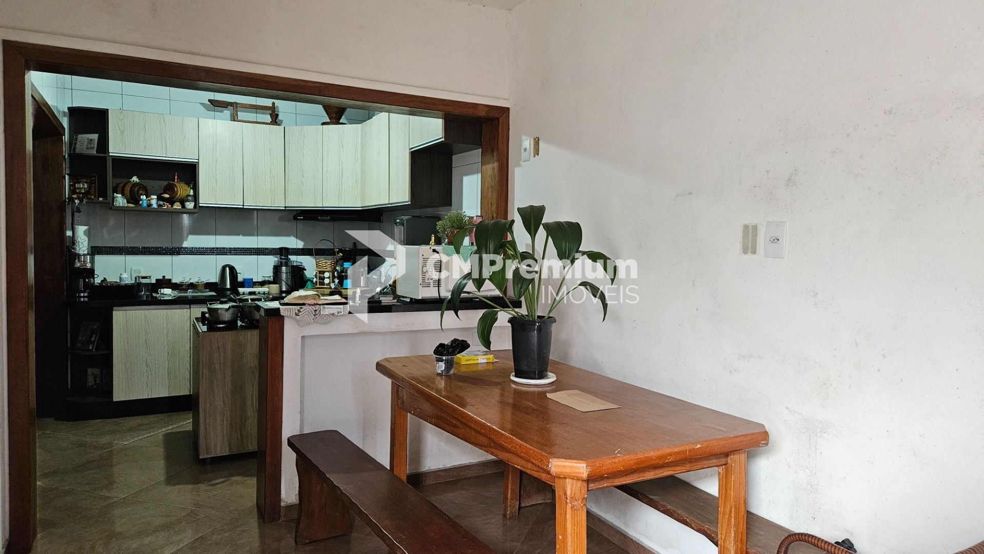 Térreo: Sala de estar, sala de jantar, cozinha, banheiro social, 1 quarto, área de serviço e garagem.