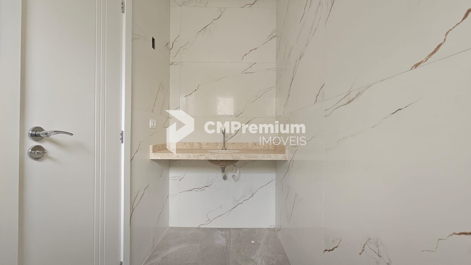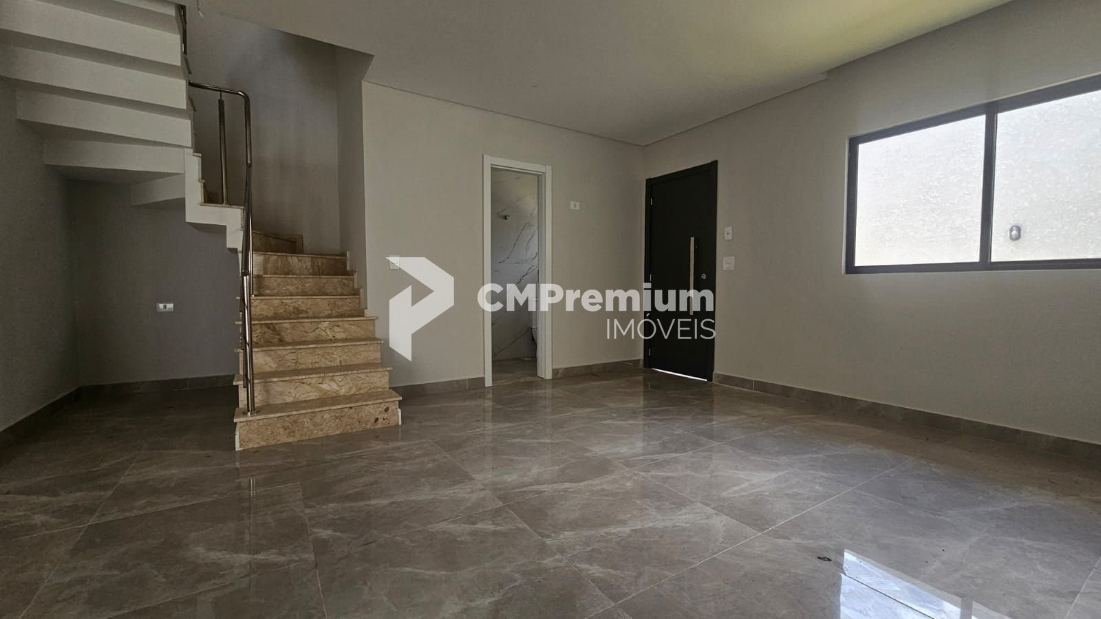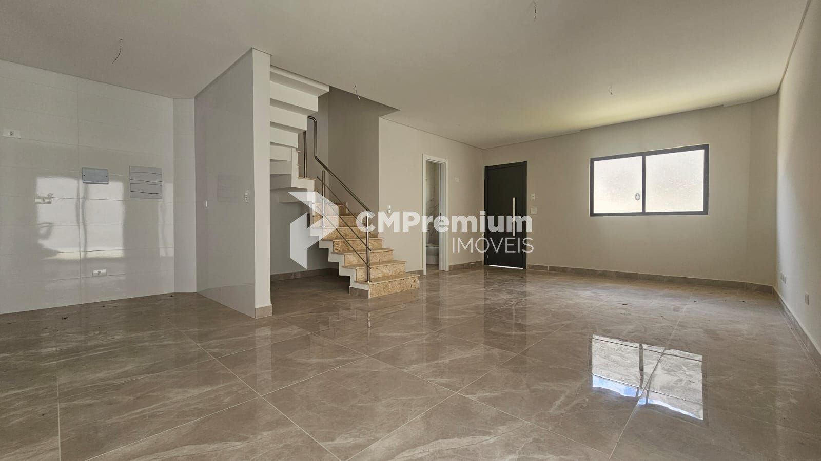 Piso térreo: ampla sala integrada à cozinha em conceito aberto, lavabo e área de serviço.