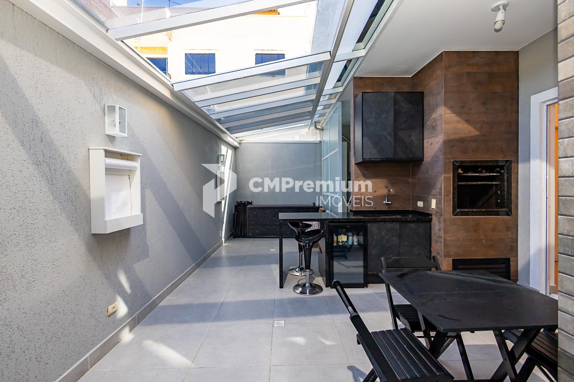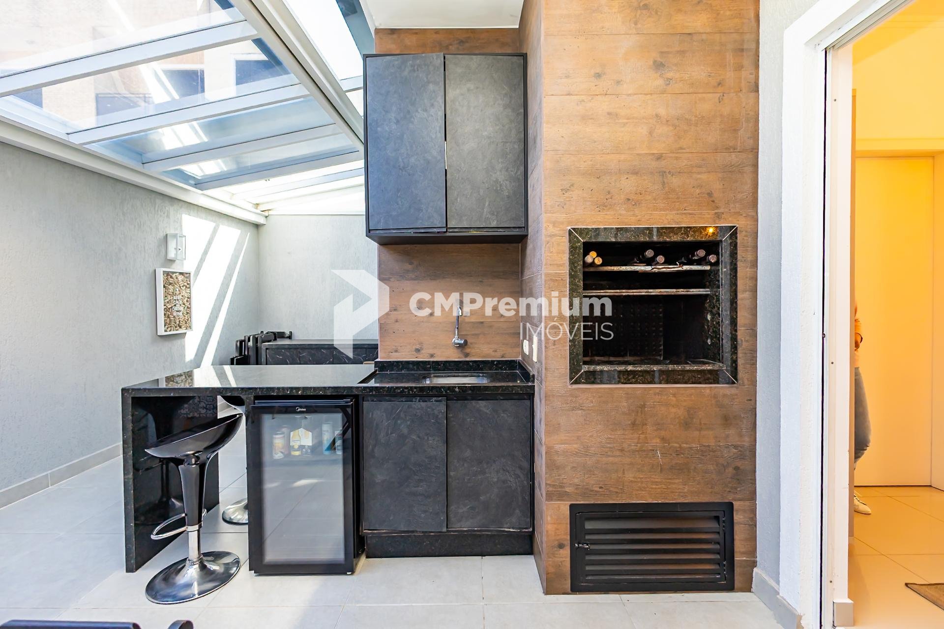 -Área gourmet com churrasqueira e armário, possui entrada lateral garantindo mais privacidade