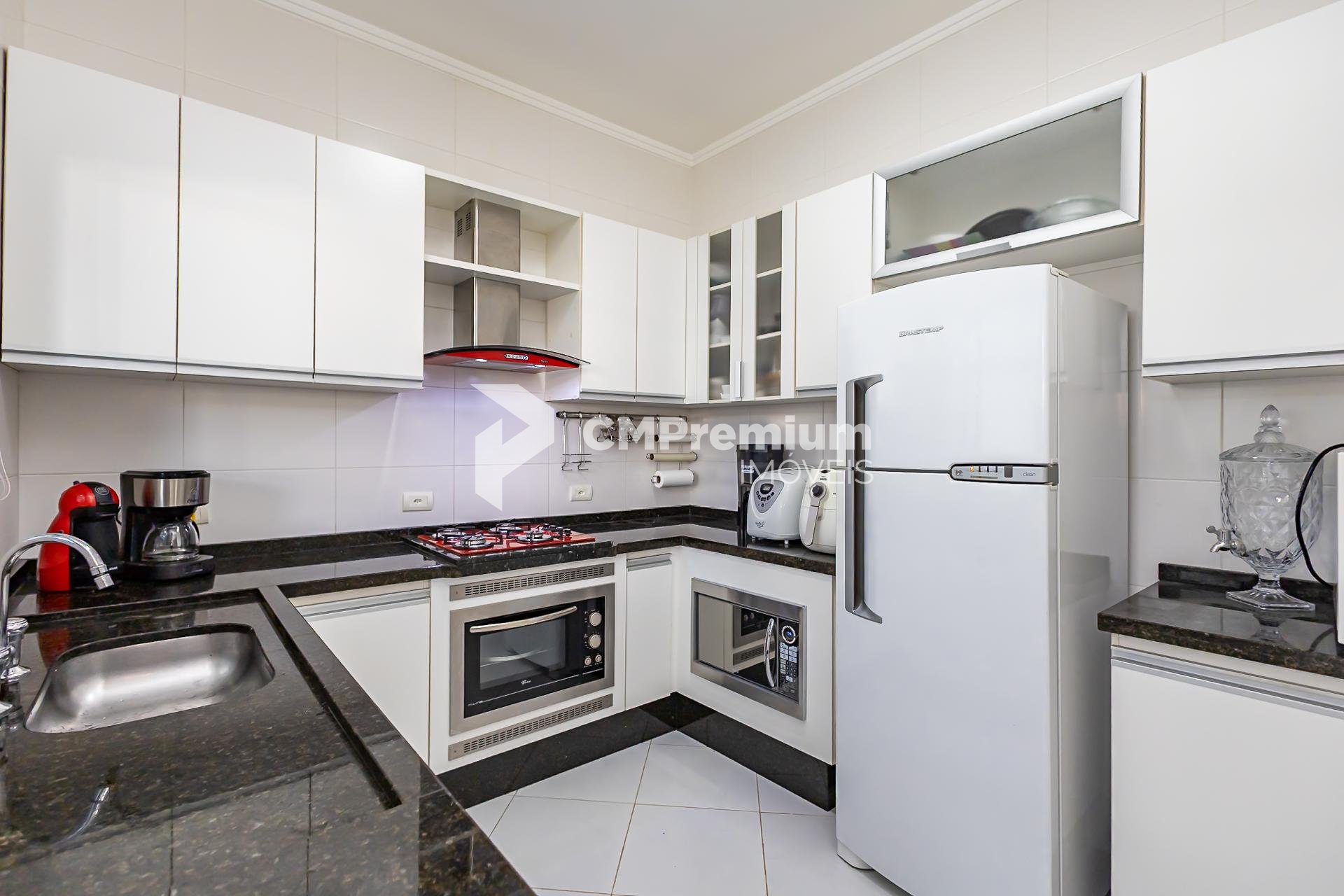 -Cozinha com armários planejados, cooktoop, forno e micro-ondas