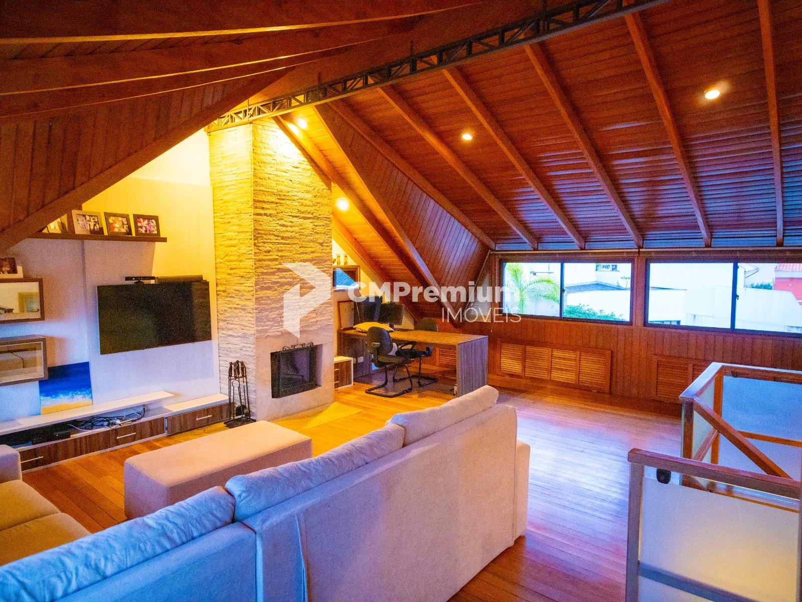 - Ático de 50m², com lareira, pé-direito alto (3,5m) e versátil para home theater, brinquedoteca ou fitness