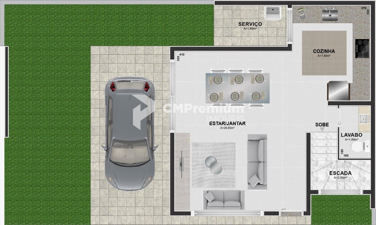 - Garagem para 2 veículos em vaga dupla (uma atrás da outra)