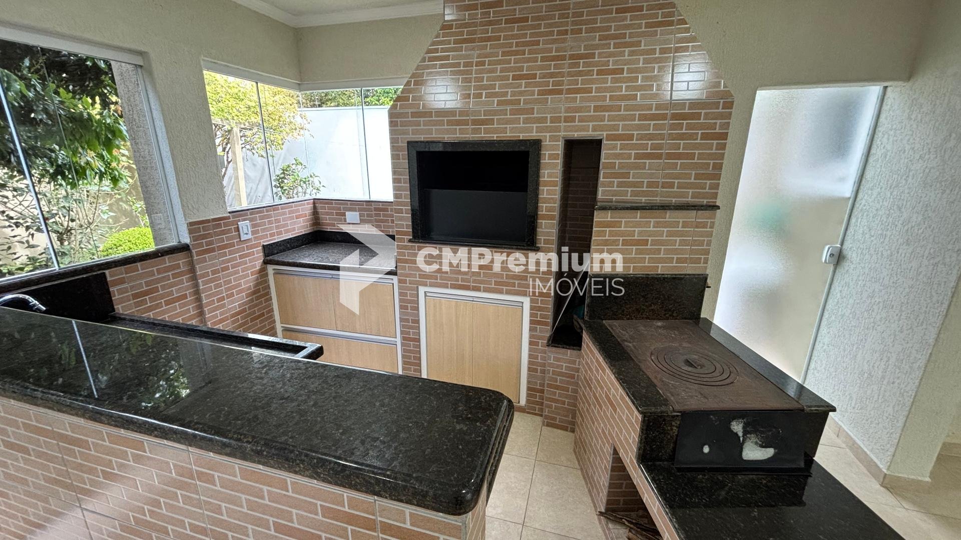 Espaço gourmet com churrasqueira, forno de pizza e fogão a lenha
