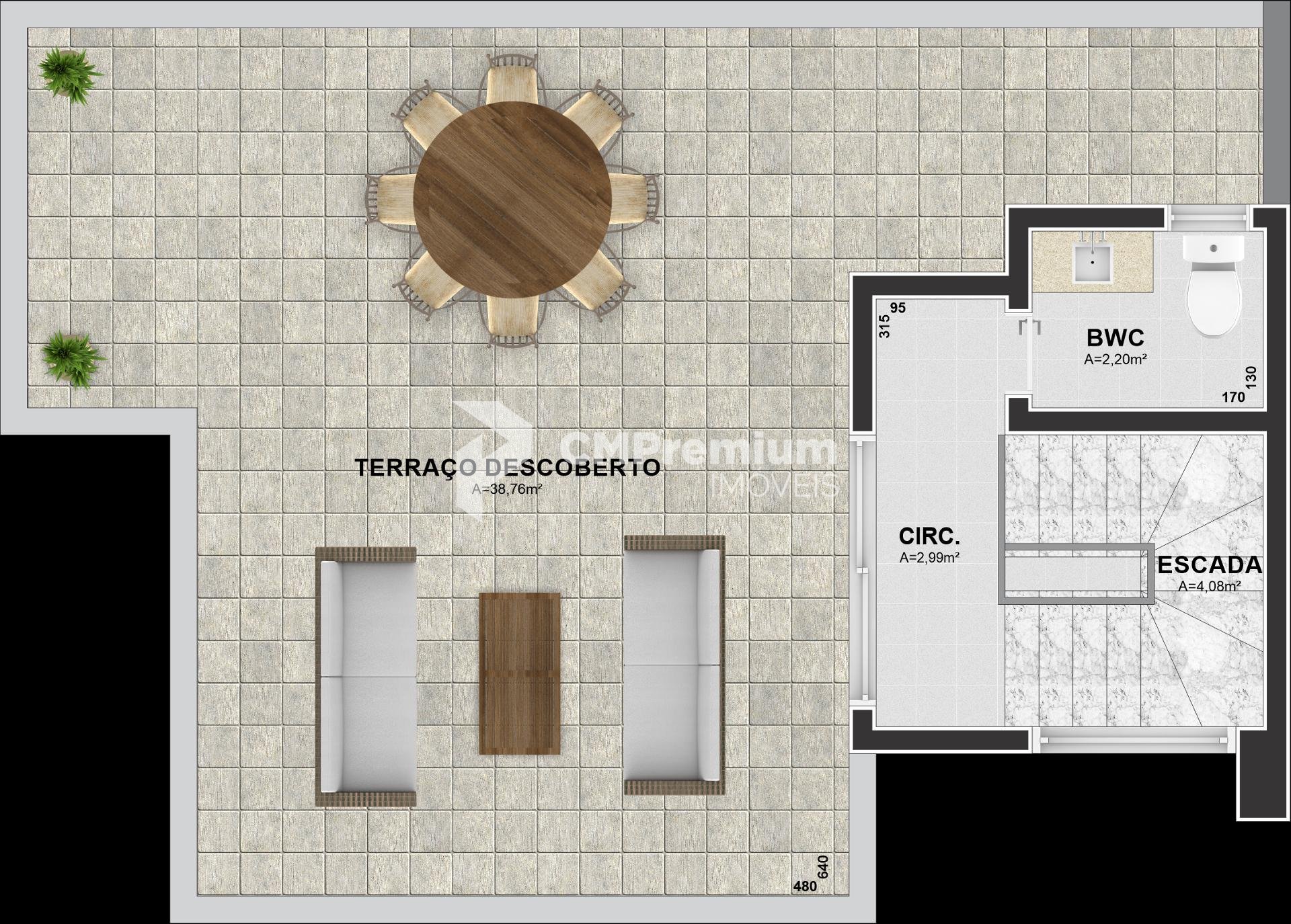 -Terraço com sala, Lavabo + sacada com 38m²