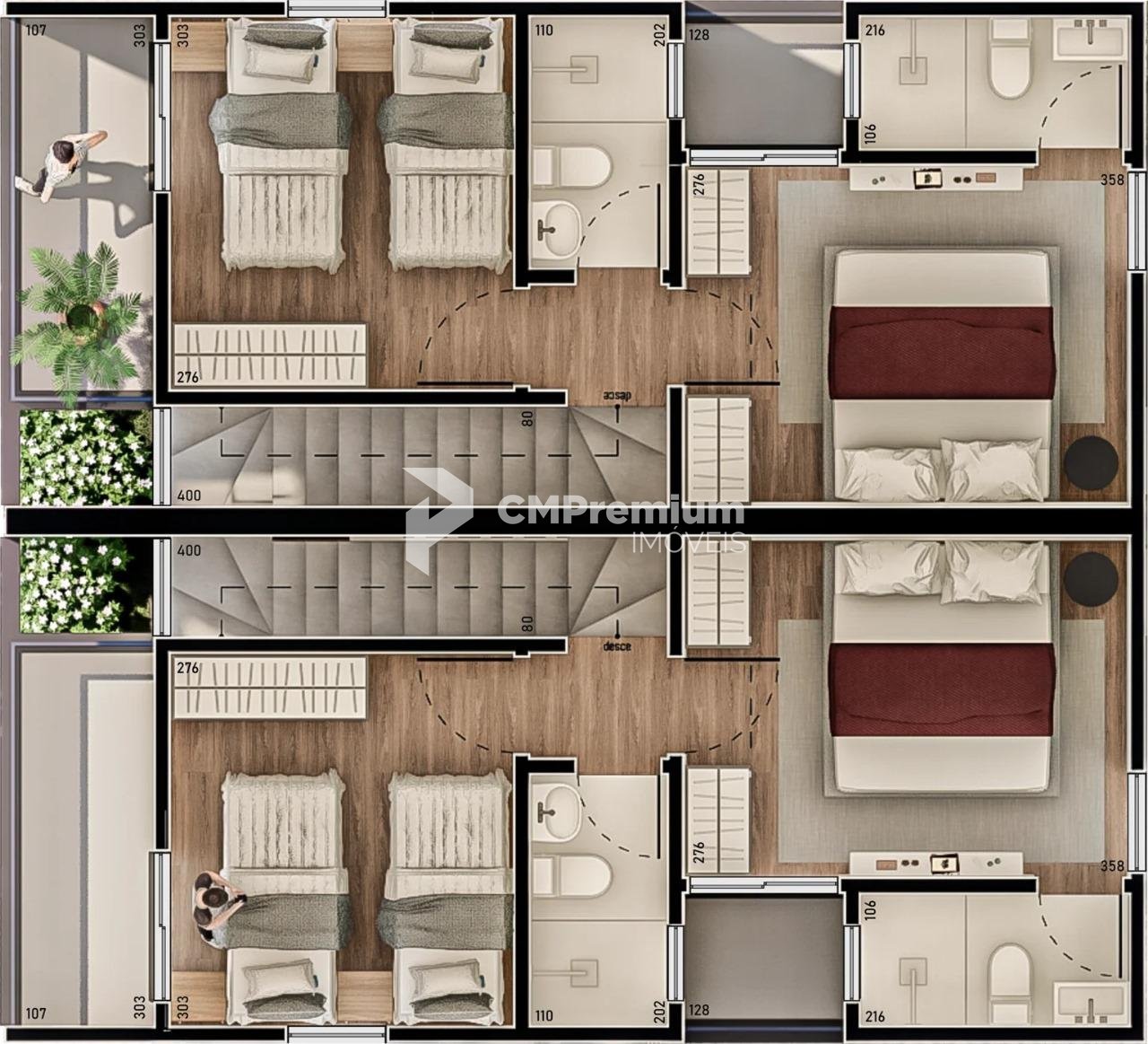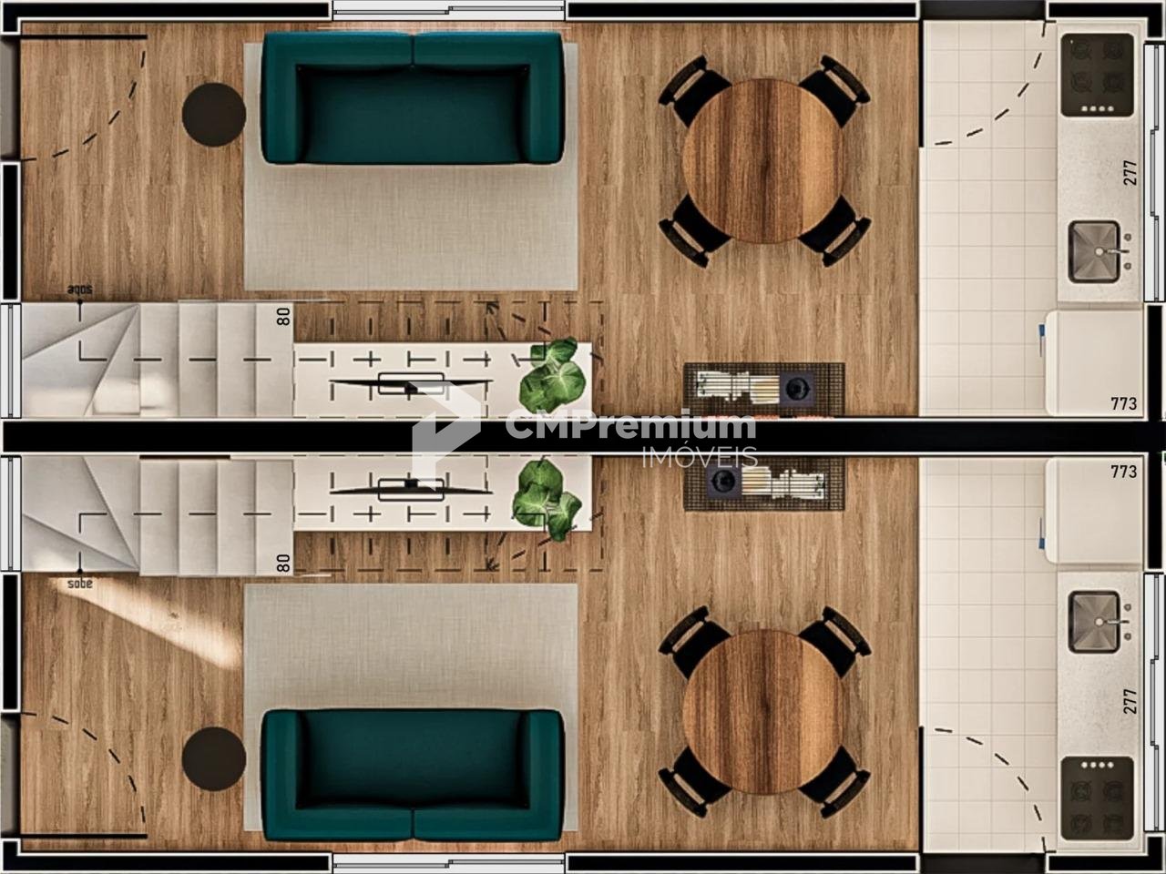 Sobrados com 62m² de área privativa, ideais para famílias pequenas ou casais que valorizam espaço e funcionalidade