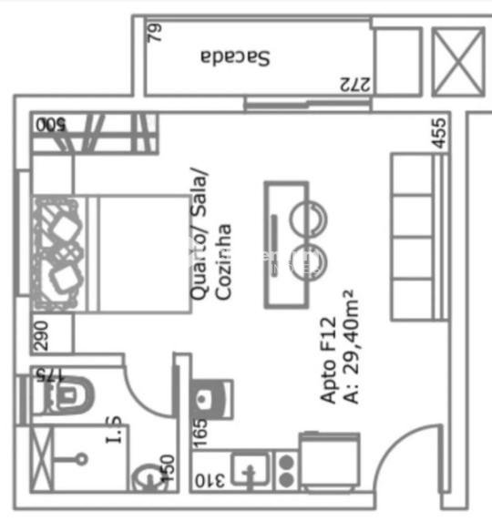 Stúdio 29,38 m com sacada, churrasqueira e vista panorâmica no Água Verde